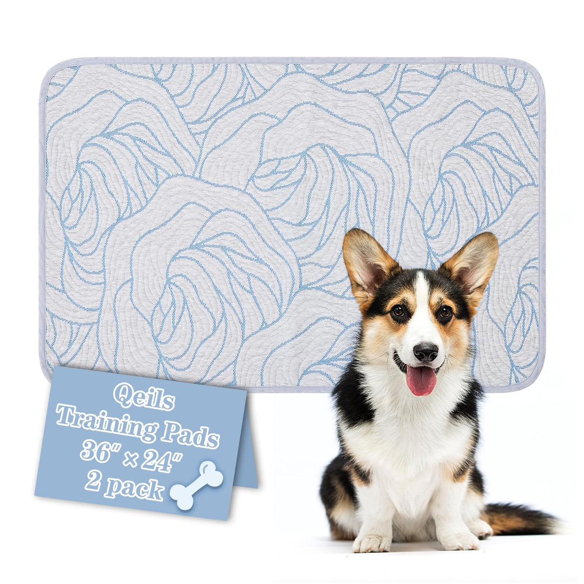 Qeils Pee Pads For Dogs, 2 Pack Reusable Puppy Pads 36''X24'' Super Absorbent Leakproof Dog Wee Wee Pads, Anti-Slip Potty Traini
