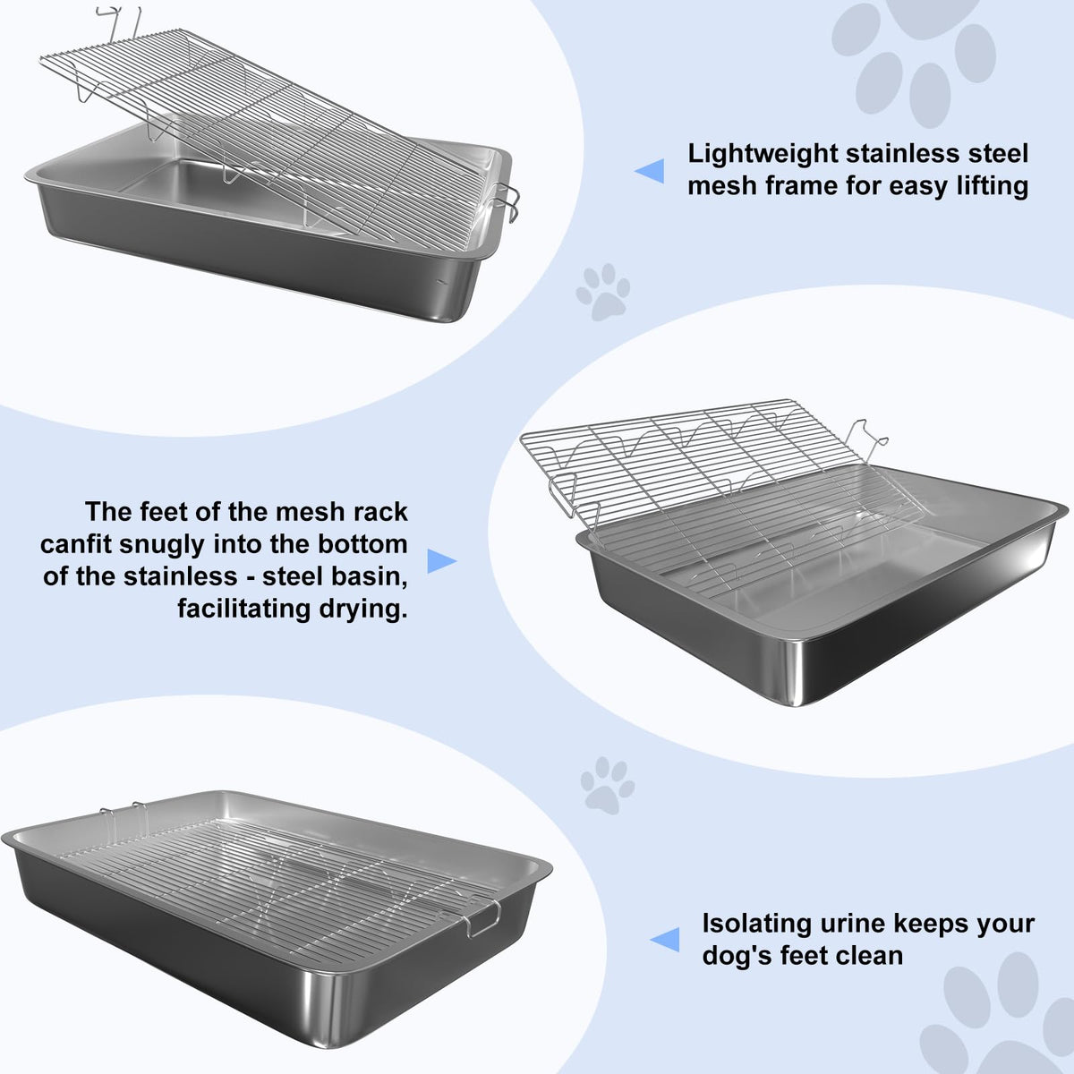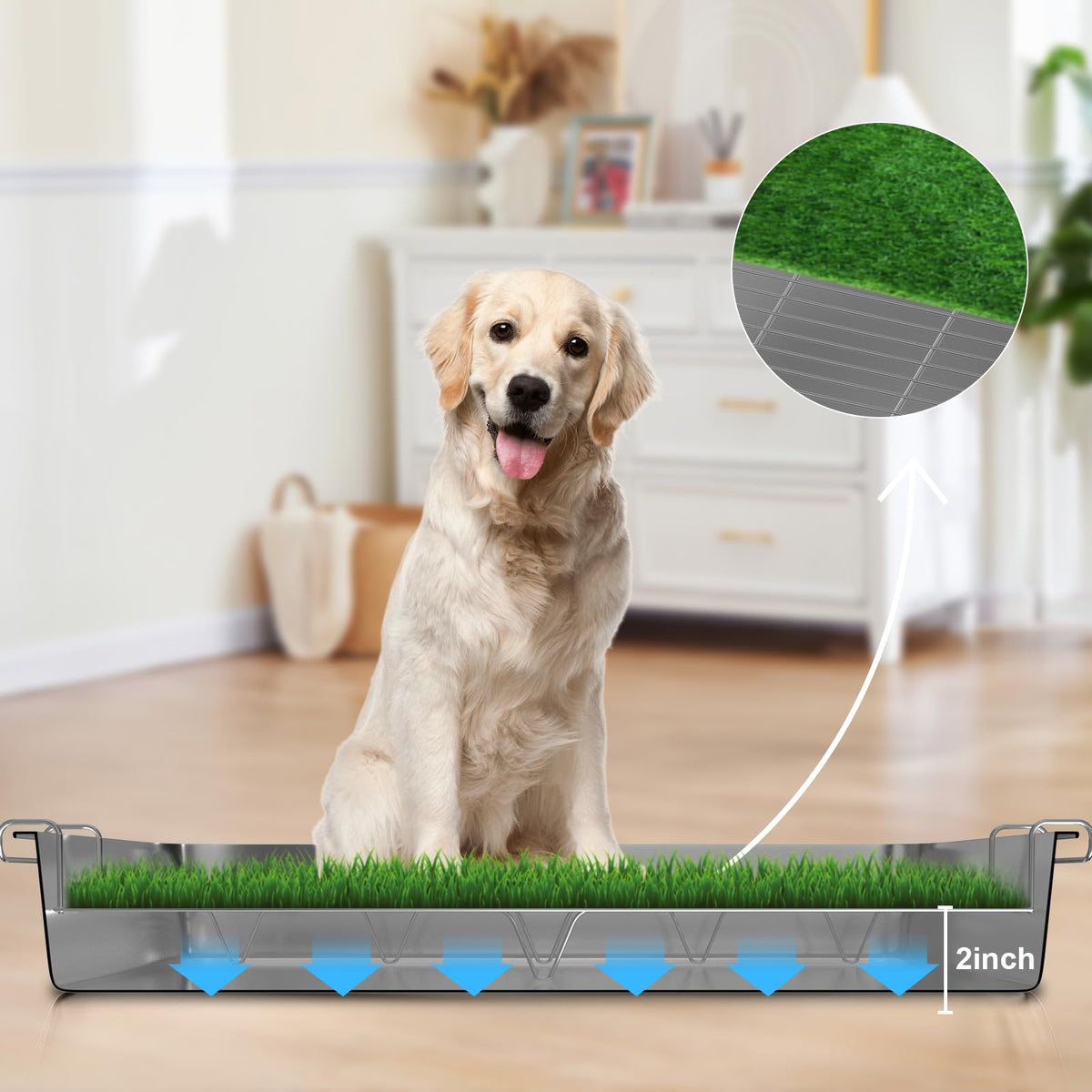 Tired Of The Hassle Of Dealing With Your Furry Friend'S Potty Needs? Look No Further! Qonimm Brings You An All-In-One Solution. Our Dog Grass Pad With Tray Is Perfect For Indoor Dog Potty Training. The Grass Pad, Whether It'S The Regular One Or The Puppy Grass Pee Pad With Tray, Provides A Natural And Inviting Surface For Your Dog To Do Its Business. It'S Made Of Top-Quality Material That'S Durable And Hardly Sheds, Ensuring Your Pup Won'T Swallow Any Debris. The Stainless Steel Tray Is A Standout Feature. Unlike Plastic Potty Trays, It'S Non-Stick And Crack-Resistant, Making Cleaning As Easy As A Quick Rinse Or Wipe. The Built-In Wire Grid Allows You To Dump Waste Without Dirtying Your Hands. With A Large Capacity, It Suits Multi-Dog Households. The Stable, Anti-Slip Base With Extra Height Keeps It Firmly In Place, Even During Your Dog'S Most Energetic Play. It Truly Is The Ultimate Dog Toilet Option For You And Your Beloved Pets. Grab Yours Now!