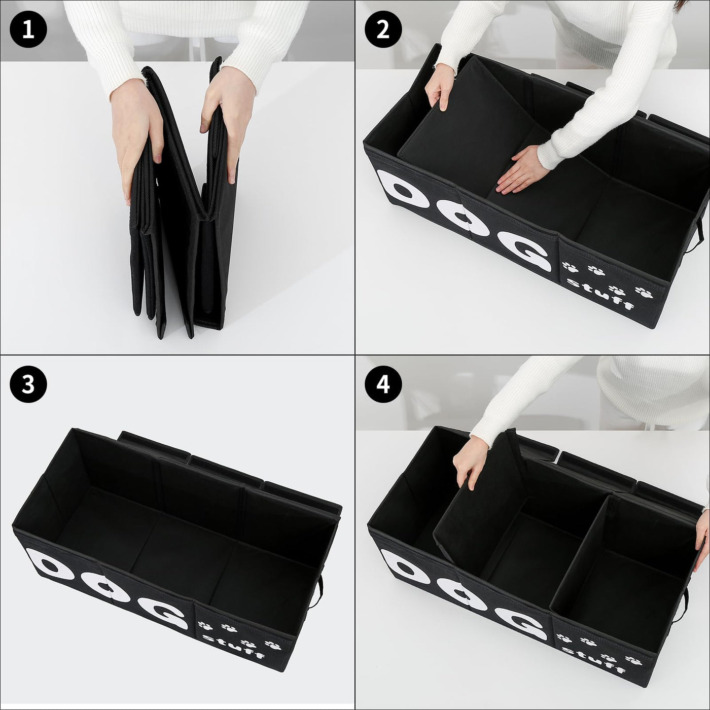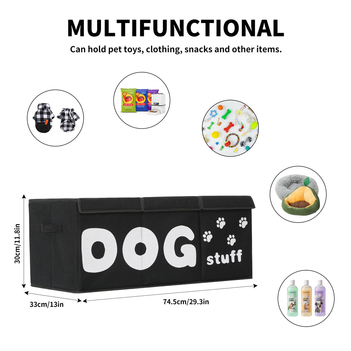Great Size For Organizing Dog Item: This Dog Toy Basket Measures 74.5Cm/29.3In(L) X 33Cm/13In(W) X 30Cm/11.8In(H), It Can Be Divided Into 3 Compartments. Easily Stores Different Kinds Of Dog Items Such As Toys, Bowls, Treats, Chews, Pee Pads Or Other Misc Things, Very Compact And Lightweight Dog Storage Organizer.