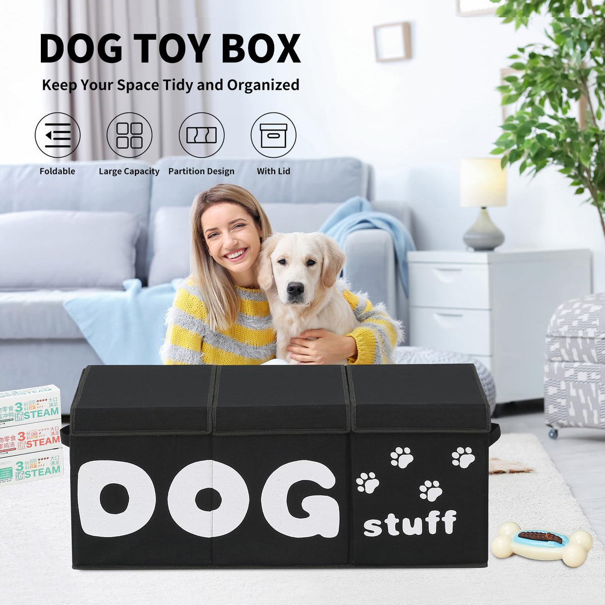 Qozary Dog Toy Storage Box - 3 Grids Large Dog Toy Basket And Storage Bin With Lid For Pet Supplies, Perfect To Keep Everything