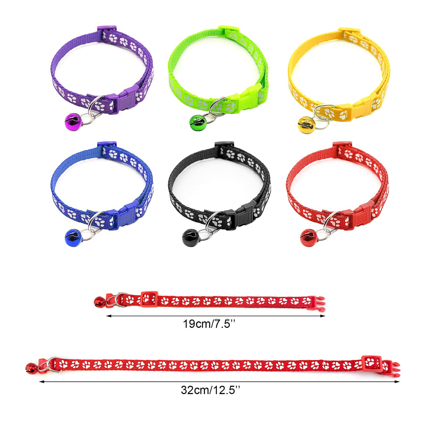 Quacc 6Pcs Puppy Collars, Puppy Whelping Collars Colourful Adjustable Dog Collar 19-32Cm Paw Print Collar With Bell For Small Do