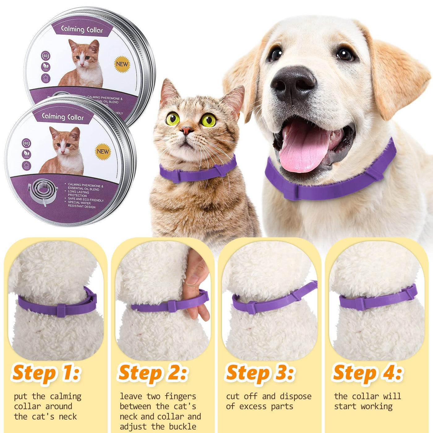 Features: Calm Down Your Pets Quickly And Help Adjust To The New Environment. Start Working Within 1 Hour. Continue To Wear And Replace Every 4 Weeks For Better Results. Pure Natural Plant Ingredients, Safe For Pets To Wear. Waterproof, No Need To Remove The Collar When Bathing Or Playing In The Rain. Specifications: Color: As Pictures Show Size: About 15 Inches/ 38 Cm Adjustable Length Package Includes: 3 X Collar For Cats Notes: Manual Measurement, Please Allow Slight Errors On Size. The Color May Exist A Slight Difference Due To Different Screen Displays. Please Don'T Fasten Too Tight And Leave Enough Room Between The Collar And Your Pet'S Neck. After Putting On The Collar For Your Pet, Please Observe His/ Her Reaction. If There Is Any Discomfort, Please Take It Off At Once