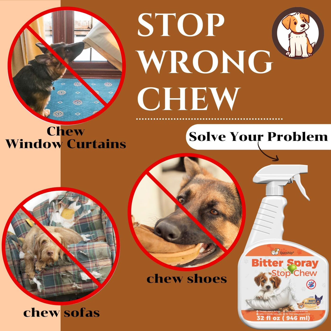 Qucship 16Oz Natural Spray To Prevent Dogs From Chewing Furniture And Items, Suitable For All Dog Breeds