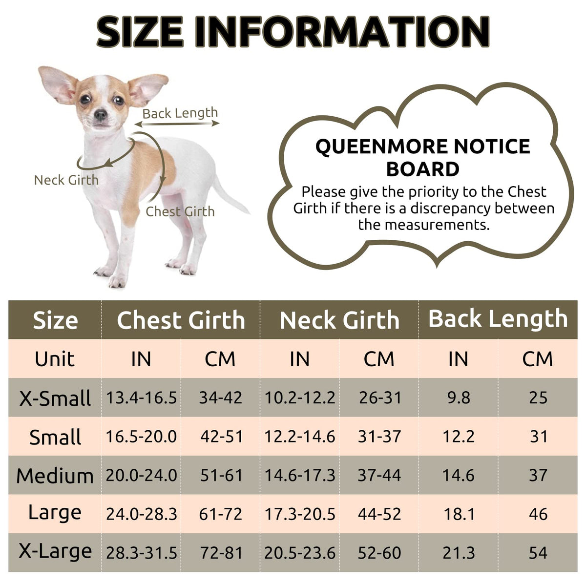 X-Small: Chest Girth 13.4' - 15.7', Back Length 9.8'