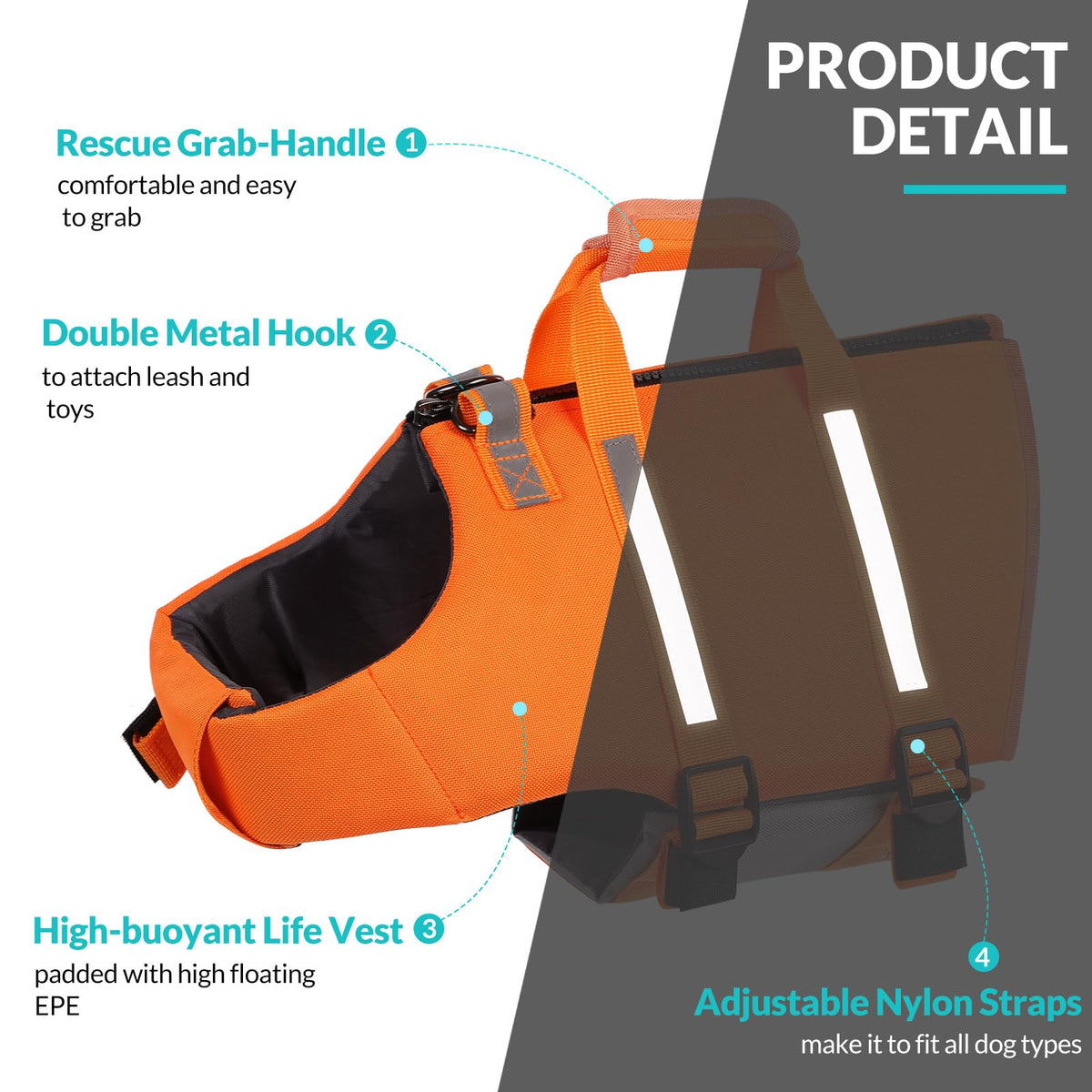 Queenmore Dog Life Jacket With More Practical Design & Better Wearing Experience Made Of High-Density Oxford Fabric, This Small Dog Life Jacket Is Sturdy, Rip-Stop And Durable For Long-Term Use. Filled With Lightweight Epe Foam, This Dog Life Jacket Small Provides Enough Buoyancy For Pet When They Are In The Water. To Ensure Furry Friends Safety, This Large Dog Life Jacket Is With A Rescue Handle Allowing You To Pull Your Dog Out Of Water. The Are Also D Ring To Link A Leash Or Toys. Quick Release Buckles And Hook & Loop Closure Also Make It Easy To Put This Dog Life Jacket Large On. If You Are Looking For A Small Dog Life Vest, Be With Queenmore. If You Are Looking For A Medium Dog Life Vest, Be With Queenmore. If You Are Looking For A Large Dog Life Vest, Be With Queenmore. Queenmore Dog Life Vest Has 5 Sizes (From Xs Through Xxl) For The Most Large Scales Of Dog Breeds From Tiny Puppy To Giant Breed. Please Read Out Size Chart And Find The One That Can Fit The Best For Your Beloved Pet. Size Chart & Instructions Xs--Back Length: 9.5'' ; Chest Girth: 13.0''-18.1''; Neck Girth: 9.1''-11.8 S--Back Length: 11.8''; Chest Girth: 16.5''-20.9'' ; Neck Girth:11.0''-15.0 '' M--Back Length: 13.4''; Chest Girth: 20.9''-25.6; Neck Girth: 14.2''-22.0'' L--Back Length: 15.4''; Chest Girth: 22.4''-30.0'' ; Neck Girth: 18.5''-24.0'' Xl--Back Length: 17.3''; Chest Girth: 25.6''-33.5'' ; Neck Girth: 23.0''-28.0'' Xxl--Back Length:19.3''; Chest Girth: 29.2''-38.6''; Neck Girth: 25.9''-30.7'' Notice: This Dog Life Vest Has The Same Size With Queenmore Shark Dog Life Jacket. You Will Love It.
