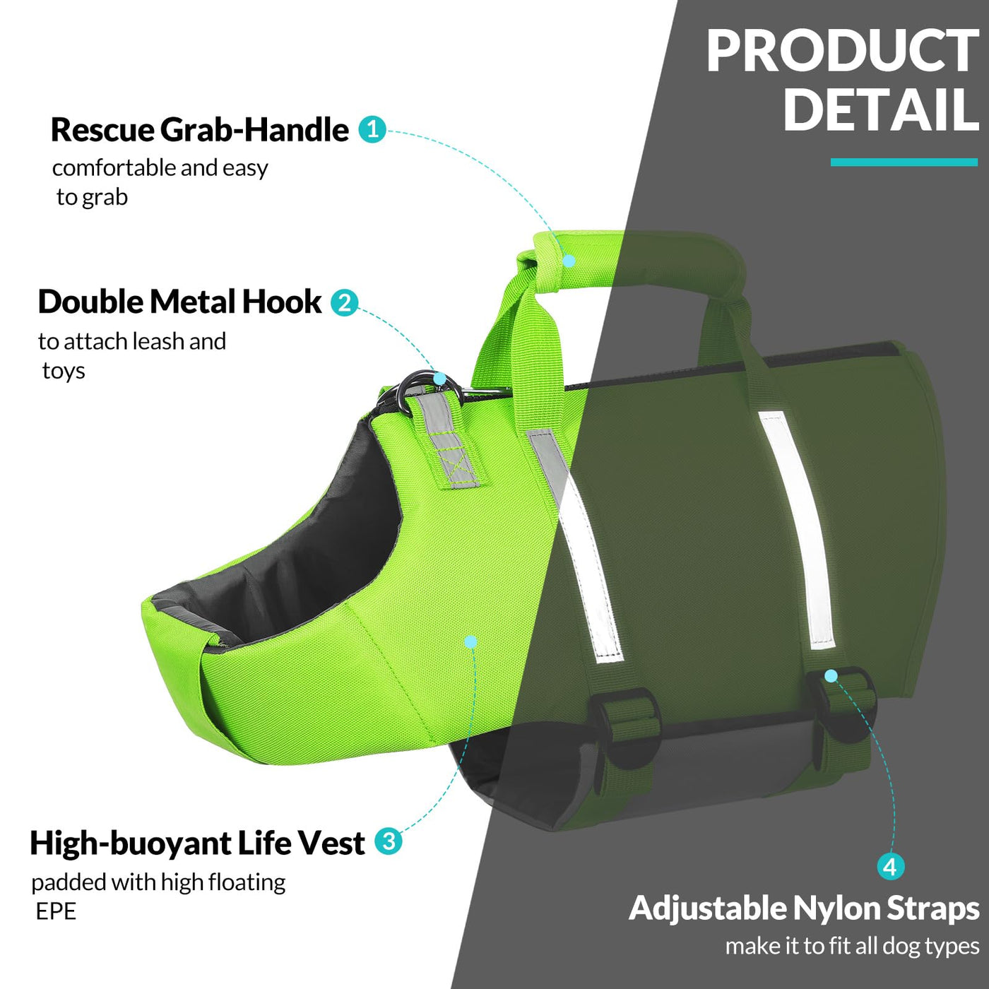 Queenmore Dog Life Jacket With More Practical Design & Better Wearing Experience Made Of High-Density Oxford Fabric, This Small Dog Life Jacket Is Sturdy, Rip-Stop And Durable For Long-Term Use. Filled With Lightweight Epe Foam, This Dog Life Jacket Small Provides Enough Buoyancy For Pet When They Are In The Water. To Ensure Furry Friends Safety, This Large Dog Life Jacket Is With A Rescue Handle Allowing You To Pull Your Dog Out Of Water. The Are Also D Ring To Link A Leash Or Toys. Quick Release Buckles And Hook & Loop Closure Also Make It Easy To Put This Dog Life Jacket Large On. If You Are Looking For A Small Dog Life Vest, Be With Queenmore. If You Are Looking For A Medium Dog Life Vest, Be With Queenmore. If You Are Looking For A Large Dog Life Vest, Be With Queenmore. Queenmore Dog Life Vest Has 5 Sizes (From Xs Through Xxl) For The Most Large Scales Of Dog Breeds From Tiny Puppy To Giant Breed. Please Read Out Size Chart And Find The One That Can Fit The Best For Your Beloved Pet. Size Chart & Instructions Xs--Back Length: 9.5'' ; Chest Girth: 13.0''-18.1''; Neck Girth: 9.1''-11.8 S--Back Length: 11.8''; Chest Girth: 16.5''-20.9'' ; Neck Girth:11.0''-15.0 '' M--Back Length: 13.4''; Chest Girth: 20.9''-25.6; Neck Girth: 14.2''-22.0'' L--Back Length: 15.4''; Chest Girth: 22.4''-30.0'' ; Neck Girth: 18.5''-24.0'' Xl--Back Length: 17.3''; Chest Girth: 25.6''-33.5'' ; Neck Girth: 23.0''-28.0'' Xxl--Back Length:19.3''; Chest Girth: 29.2''-38.6''; Neck Girth: 25.9''-30.7'' Notice: This Dog Life Vest Has The Same Size With Queenmore Shark Dog Life Jacket. You Will Love It.