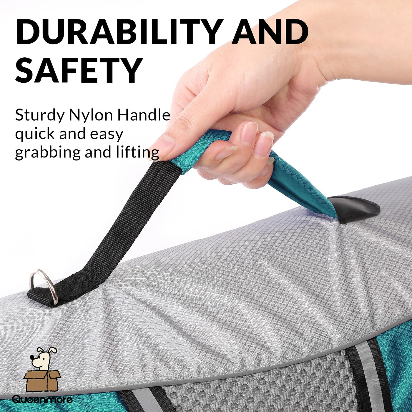 Why You Should Get A Life Jacket For Your Dog? Your Dog Are Not Born To Be A Water Dog. A Qualified Dog Floating Vest Can Keep Your Dog Afloat Above The Water When Your Pet Gets Tired. A Life Vest For Dog Help Your Dog Swim Better In Safe Conditions. Why You Should Get A Queenmore Life Vest For Your Dog? Queenmore Dog Life Jacket Boasts For High Floatation, Durable Grab Handle To Lift Your Dog Up From Water And Resuce Your Pet, High Reflective And Peek Your Dog Quick And Easily And Durable Fabrics With Strong Sewing. We Are Striving To Design And Manufacture Pet Life Jacket For More Than 10 Years And Earn A Reputation In This Feild. This Dog Life Jacket Is Design For Small And Medium Breeds. Dogs Even Weigh Less Than 5 Bls Can Find A Suitable Size With Us. The Cute Dog Water Vest Is Perfect For Cat, Puppy, Small And Medium Doggie Including Pomeranian,Maltese,Toy Poodle, Pekingese, Border, Collie, Bulldog, Dachshund, Boston Terrier, Pug, Beagle, Corgi, Labs And So On. Please Measure Your Dog Carefully And Choose A Life Jacket With Great Fit For Your Puppies, Small Dogs And Medium Dogs. X-Small== Chest Girth:14.96''-19.29'' --- Back Length:7.87'' --- Neck:10.24''-11.81'' Small== Chest Girth:16.54''-21.26'' --- Back Length:9.84'' --- Neck:11.02''-13.78'' Medium== Chest Girth:18.50''-24.04'' --- Back Length:11.81'' --- Neck:11.81''-15.75'' Large== Chest Girth: 20.87''-28.35'' --- Back Length: 13.78'' --- Neck:13.39''-18.11'' X-Large== Chest Girth:24.41''-33.07'' --- Back Length:15.75'' --- Neck:15.74''-21.26'' Xx-Large== Chest Girth:25.98''-35.04'' --- Back Length:17.72'' --- Neck:16.54''-22.83''