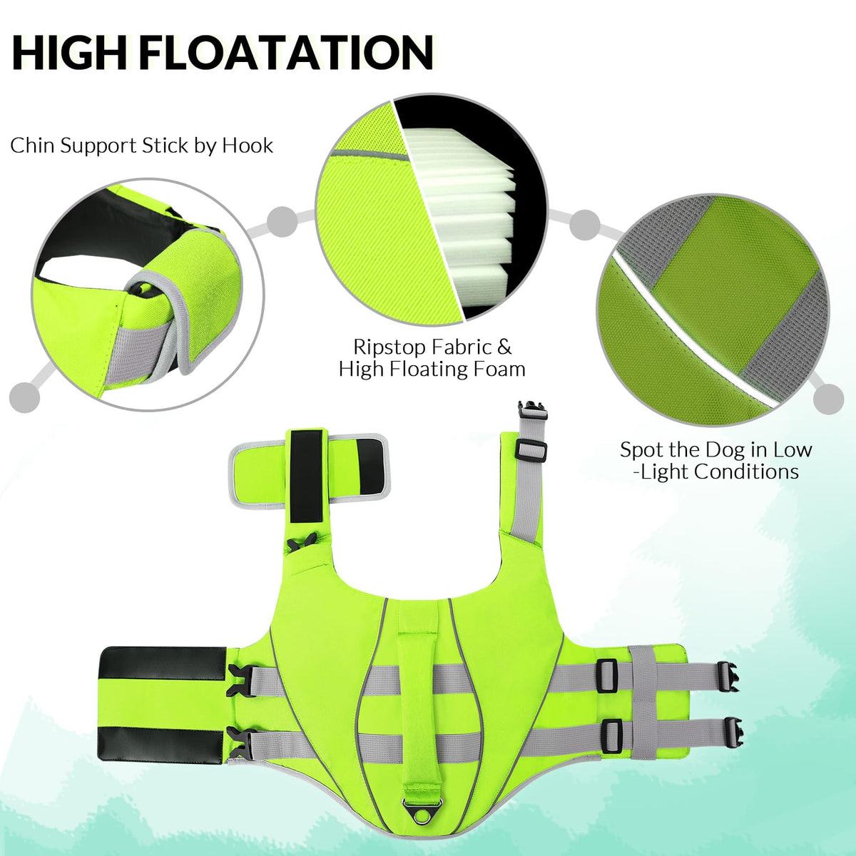 Queenmore Large Dog Life Jacket, Dog Life Vest For Swimming Boating, Puppy Life Jackets For Small Dogs, Ripstop Pet Life Vests W