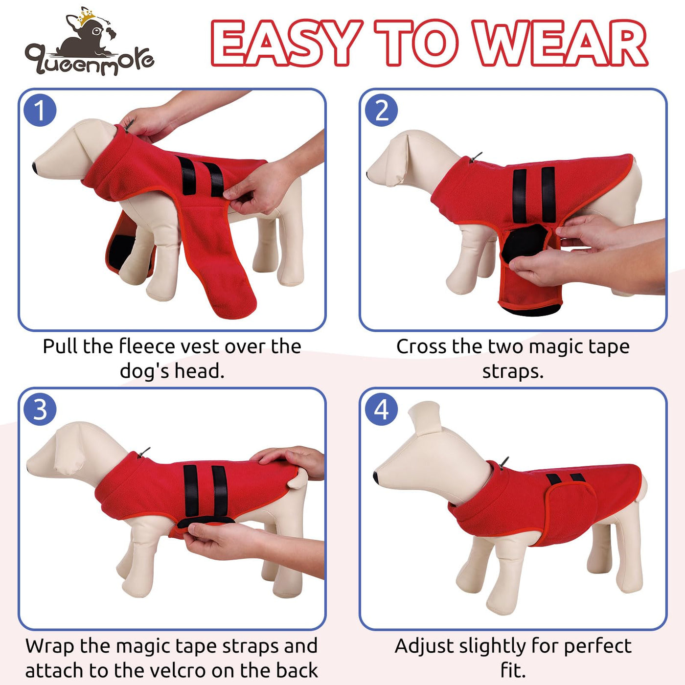 Queenmore Medium Dog Sweaters, Soft Fleece Vest Pullover Dog Jacket with Leash Hole, Warm Winter Dog Clothes Cold Weather Doggy Dachshund Sweater for Medium Dogs Cats Boy or Girl (Red,M)