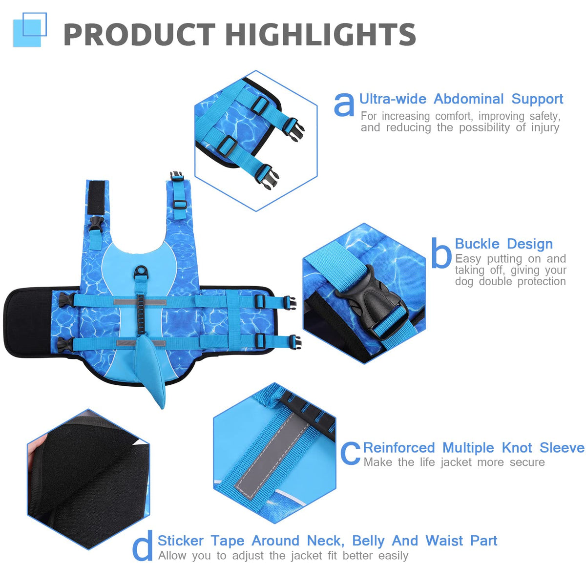 Queenmore Shark Dog Life Jacket, High Buoyancy Swimming Vest, Adjustable Easy-On Dog Life Jackets For Dogs (Blue, Xs)