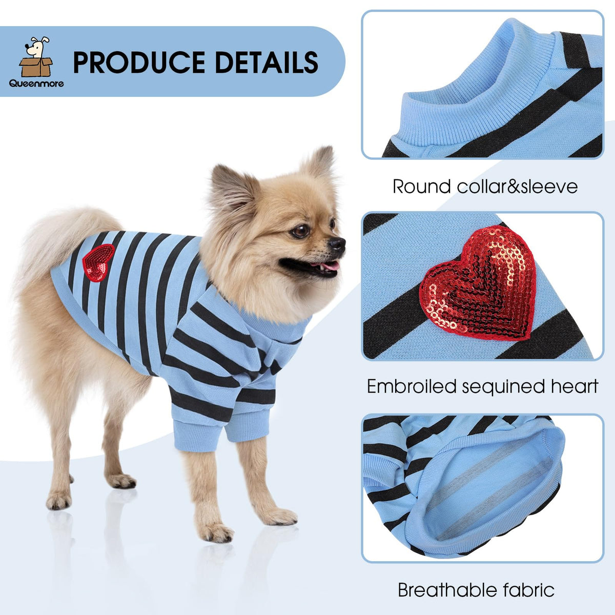 If You Are Looking For A Clothes That Can Always Keep Your Pet Comfortable, You Find It Now! Queenmore Dog Shirt Is Made Of High Quality Cotton. It Is Soft, Light, Breathable. It Is Striped And Adorable. It Has Long Sleeves. It Fits Well On Small Dogs, Medium Dogs, Puppy, Cats. It Boasts The Following Features Well Made Pet Shirts - Made Of Cotton Fabric And The Shirts For Dogs Is Comfortable, Soft, Breathable, Light And Skin Friendly. Long Sleeve And Striped - The Adorable Shirt For Dogs Is Designed With Stripes And Long Sleeve. It Has Moderate Thickness And It Is Nice To Be Used For All Seasons To Keep Your Beloved Furry Friends Comfortable. Cute Tiny Embroidered Heart - The Sequined Embroidery Hearts Add A Lot Cuteness To The Stylish Dog Shirts. It Is Best Clothes For Small Girl Dogs And Boy Dogs. Small Dog Shirt - The Comfy And Adorable Pet Outfit Is The Nice For Puppy, Small Dogs, Medium Dogs And Cats Including Chihuahua, French Bulldog, Poodle, Shih Tzu, Pug, Sphynx Cat And So On. For Daily Wear And Special Occasions - The Dog Tshirts Is Nice For Many Occasions Including Daily Wear, Walking Outside, Wedding, Photo Shooting, Birthday, Holiday And Festive