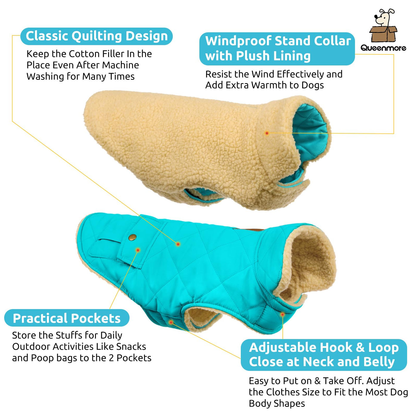 Queenmore Warm Dog Coat, Cold Weather Puffer Dog Vest, Quilting Winter Jacket Ultra Thick Plush Fleece Lining Pet Clothes With S