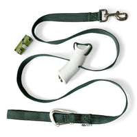 The Quick-Control Dog Leash combines safety, functionality, and comfort in one versatile design. Its ergonomic T-shaped grip provides instant, stable control, making it perfect for training or navigating high-pressure situations. The sliding grip locks securely anywhere along the leash, allowing you to customize the length for short, medium, or long handling. Stay visible and safe during nighttime or early-morning walks with the leash's high-visibility reflective stitching. Built with heavy-duty nylon and an aircraft-grade aluminum carabiner, this leash ensures long-lasting durability for all your adventures. Plus, it comes equipped with a built-in poop bag holder that holds up to 3 baggies at a time and a complimentary roll of 15 poop bags, so youre always prepared for cleanups on the go. With its innovative 6-in-1 design, the Quick-Control Dog Leash transitions effortlessly between an adjustable traffic leash, tether, and hands-free leash. Available in multiple reflective colors, its as stylish as it is functional-perfect for training, everyday walks, and everything in between.