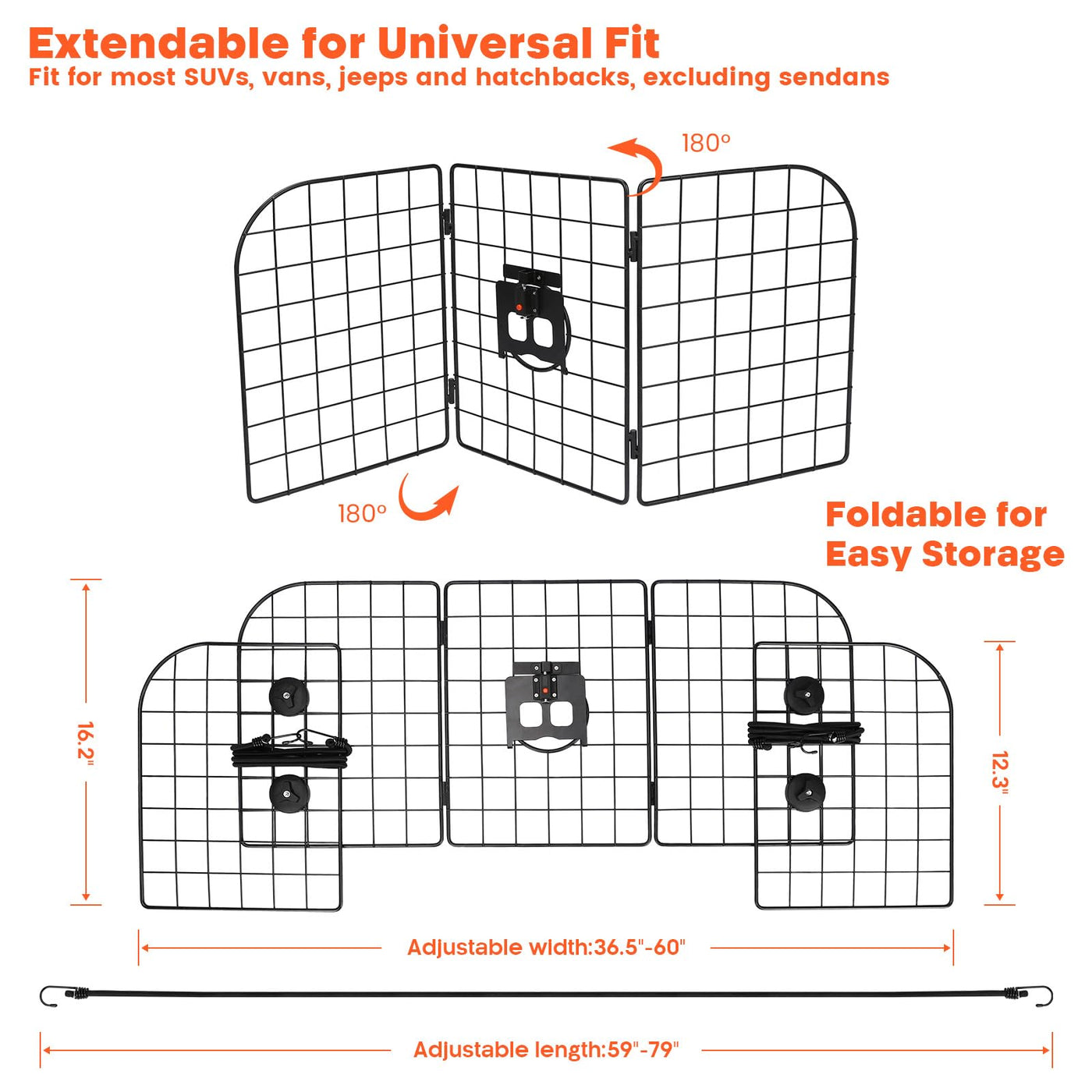 Qulimetal Dog Barrier for SUV, Adjustable 36.5'' to 60'' Width dog car barrier for SUVs,Vehicles, Trucks, Foldable, Heavy-Duty Wire Mesh Barriers, Straps & Bungee Cords for Double Stability, suv pet barrier