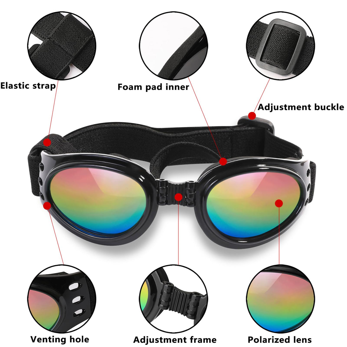 QUMY Dog Sunglasses Dog Goggles for Medium Large Breed Dogs, Wind Dust Fog Protection Eye Wear Pet Glasses with Adjustable Strap
