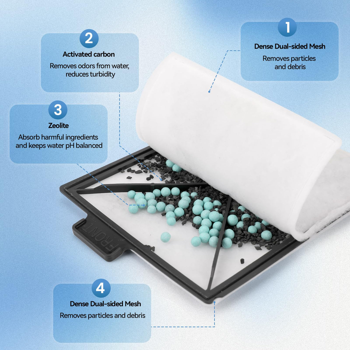 Looking For A Reliable And Efficient Solution To Keep Your Aquarium Clean And Healthy? Look No Further Than Our 8-Pack Of Custom-Designed Filter Cartridges For Aqueon Quietflow Led Pro Power Filters, As Well As Various Other Filter Sizes. Our Advanced 5-Stage Filtration System Combines High-Quality Filter Cartridges With Ammonia Pads, Super Activated Carbon, And Treated Zeolite To Effectively Absorb Impurities, Pollutants, And Heavy Metals From Your Aquarium Water. Crafted With Top-Quality Zeolite, Our Filter Cartridges Are Designed To Eliminate Harmful Toxins, Ammonia, And Heavy Metals While Balancing Ph Levels, Supporting Beneficial Bacteria And Aquatic Plants, And Optimizing Fertilizer Effectiveness. Plus, You Won'T Have To Worry About Carbon Powder Leakage Or Water Pollution, Thanks To Our Even Distribution Of Cotton. Installation Is A Breeze - Simply Rinse The Fish Tank Filter Cartridge Under Cool, Clean Water Or Aquarium Water To Wash Off Any Dust, And Insert It Into The Flushing Chamber Completely. For Optimal Water Quality, We Recommend Replacing The Cartridge Every 2-4 Weeks Based On Your Fish Population. Our Filter Pads For Aqueon Can Also Be Cut To Suit Your Aquarium Size. Don'T Settle For Anything Less Than Quality Filtration For Your Aquatic Ecosystem - Choose Our Reliable And Compatible Filter Cartridges For Aqueon And Other Filter Sizes Today!