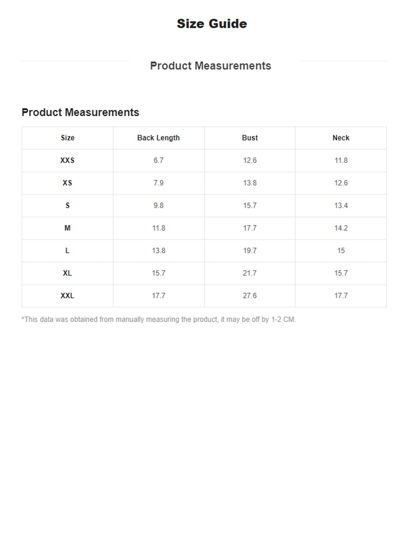 Q: How do I choose the right size for my dog?A: To choose the right size for your dog, please refer to the size chart provided in the product description. Measure your pet's back length, bust, and neck circumference to select the appropriate size that will ensure a comfortable fit.