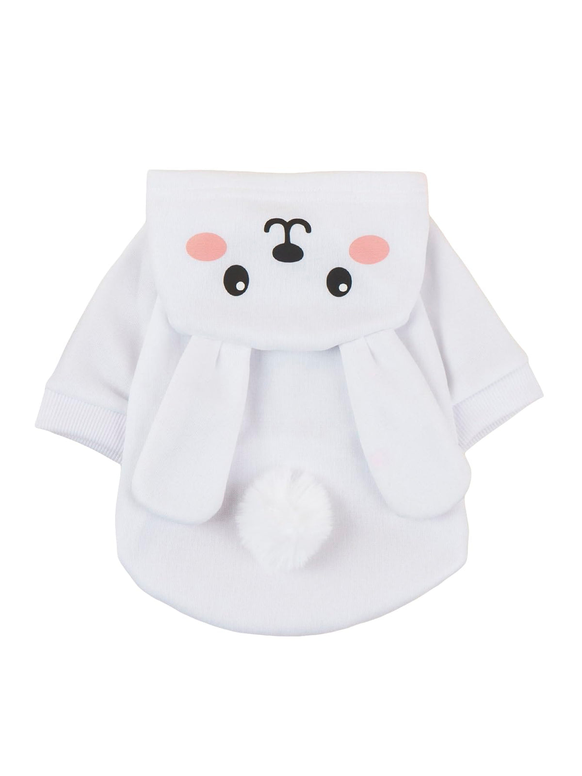 Qwinee Rabbit Dog Hoodie Dog Warm Jacket Coat Puppy Sweatshirt Christmas Halloween Dog Costume Cosplay Winter Dog Clothes Pet Apparel For Small Medium Dogs Cats Kitten Solid White Xl