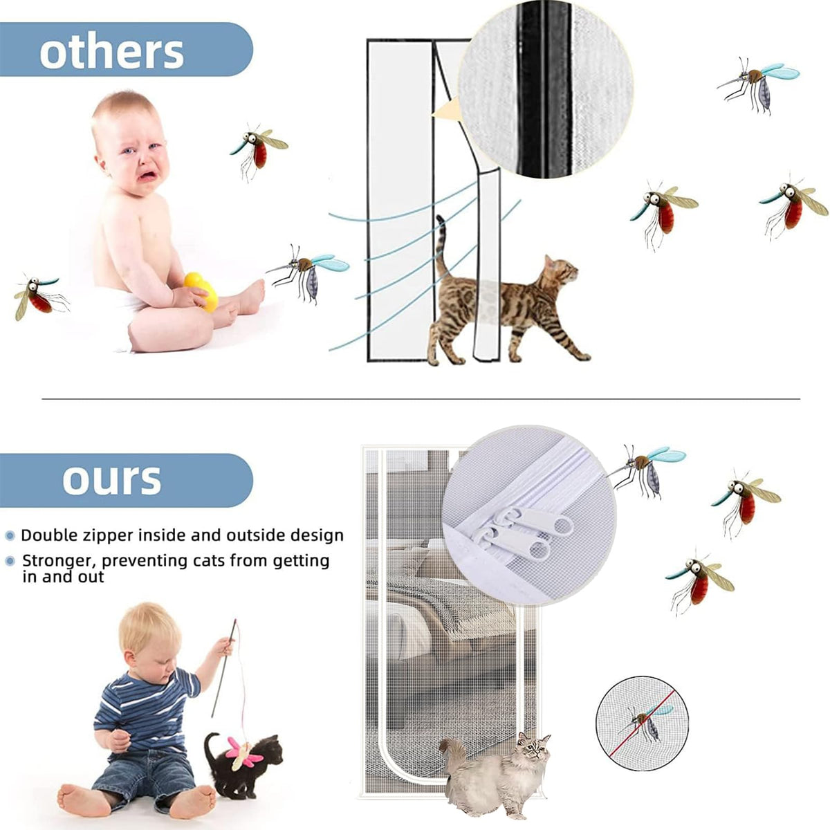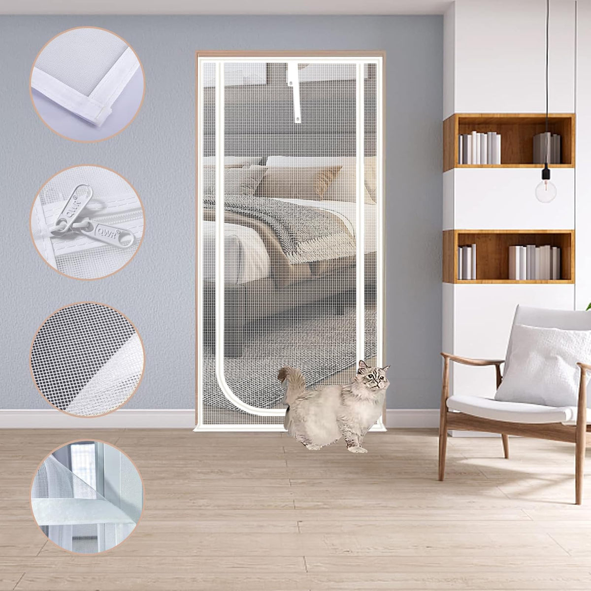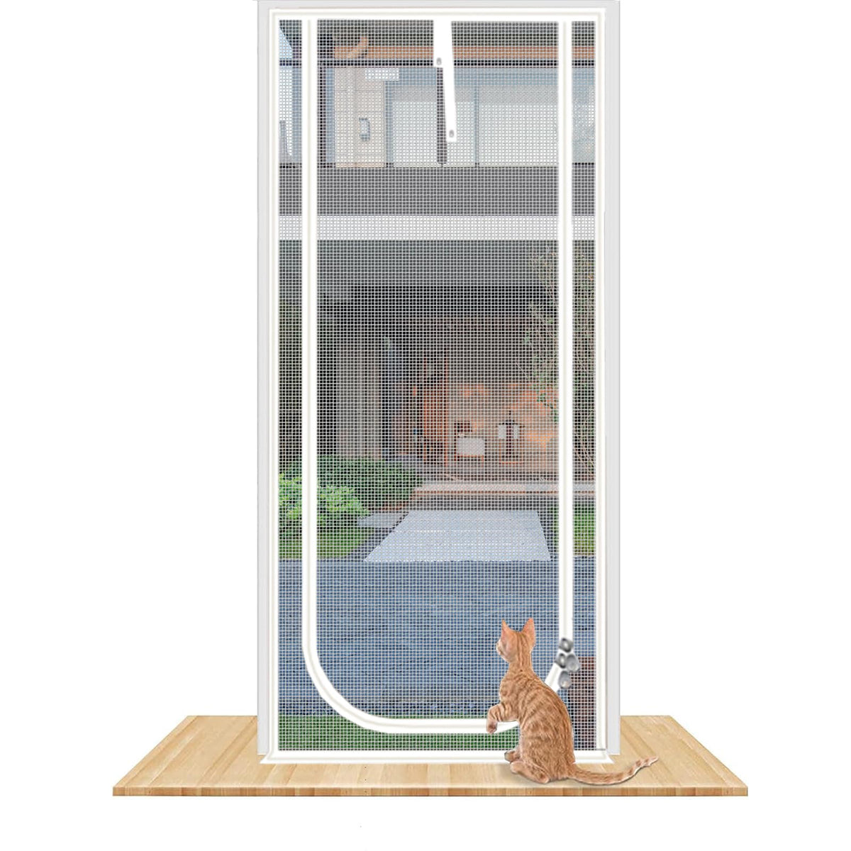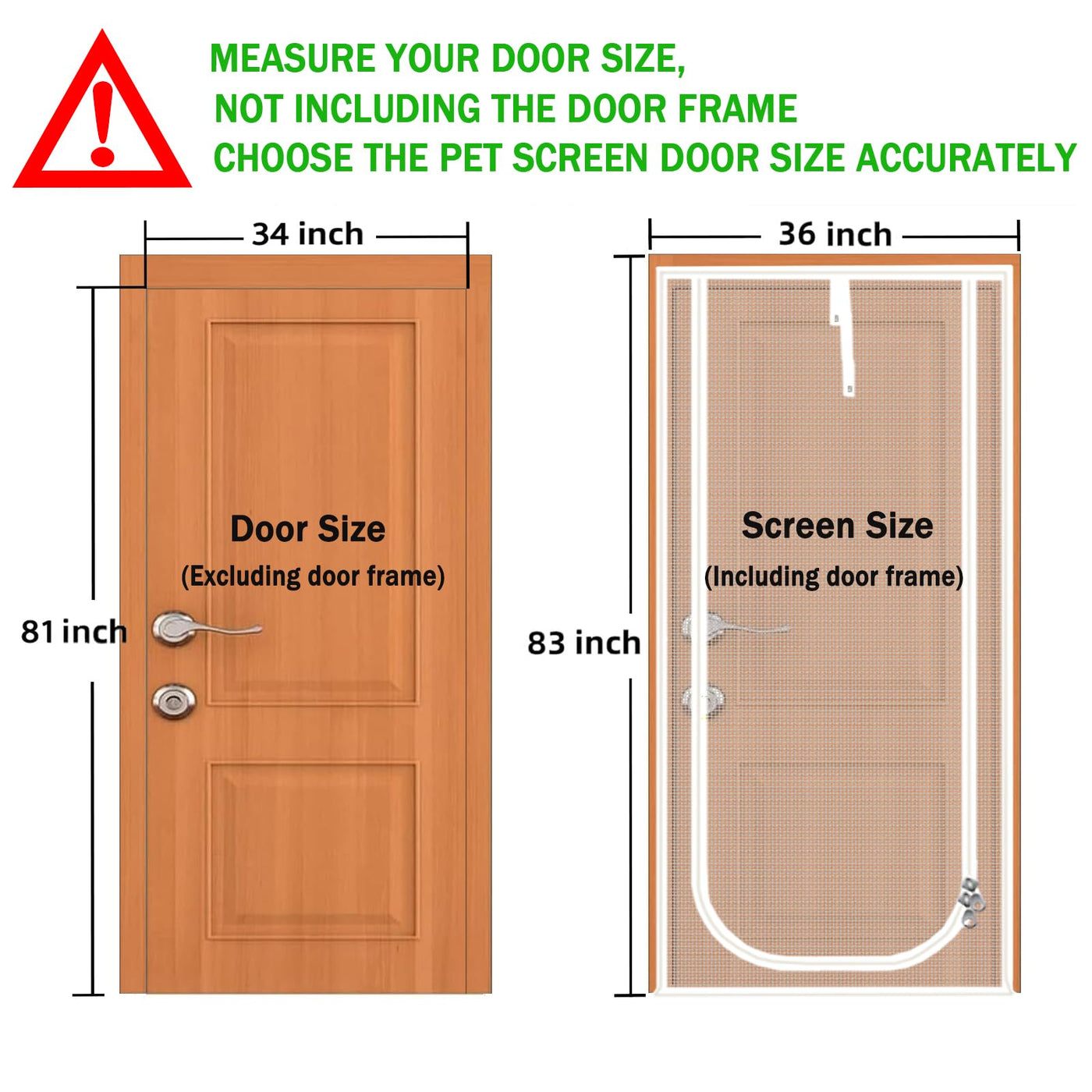 When your pet is sick or during treatment, you can shield it in a fixed room , prevent pets from running out of the room, while they can still enjoy fresh air.When you have a baby, in order to prevent your pets from disturbing, you can install screen doors to refuse pets visits.Of course, two high-quality double-sided zippers can fix the size of the screen door opening, and you decide the freedom of your pet.so you dont need to Pull the zipper to get in and out when you are busy.You can remove it at any time when you need to shield.Very convenient.Name: Pet safety screen door.Material: Vinyl coated steel wire.Specifications: The high-density mesh made of nanotechnology .Longer service life, sturdy and durable, cat-scratch-resistant, washable.Velcro and thumbtacks can adapt to different installation conditions and doors with different opening directions.Notice:1: Please carefully measure the size of your door when you buy,do not measure the door frame. ( the cat door screen you get must be larger than the size of the door you measured before it can be installed.)2: Please clean the surroundings of your door frame when installing, so that the Velcro will be firmer.3: When removing the Velcro, please use a hair dryer to heat it to avoid damaging the wooden door frame.Packing: cat door screen x1 Velcro roll x2A pack of thumbtacks x1Installation manual x1Service: We are committed to the best customer experience.If you have any questions, please contact us in time. We can perfectly help you solve any problem.