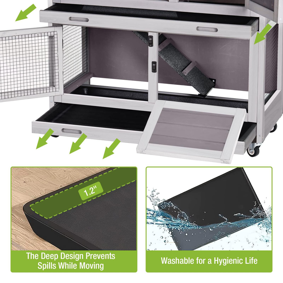 Rabbit Hutch Bunny Cage, Guinea Pig Cage Bunny Hutch Indoor, Wood Pet Cage With 4 Casters -2 Story & 2 Trays