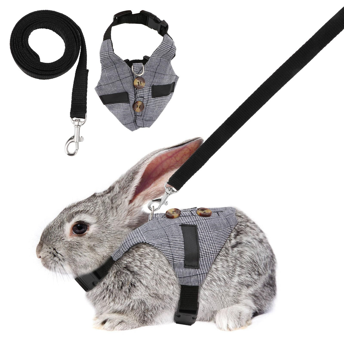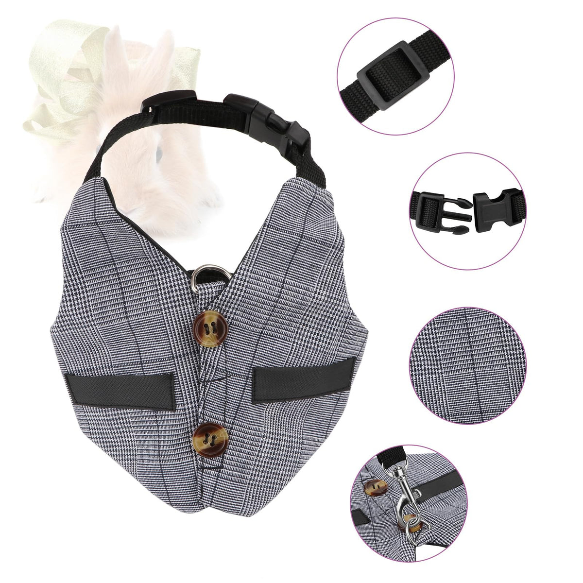 Rabbit Vest Harness and Leash Set Adjustable Formal Suit Style for Bunny Kitten Small Animal Walking (S)