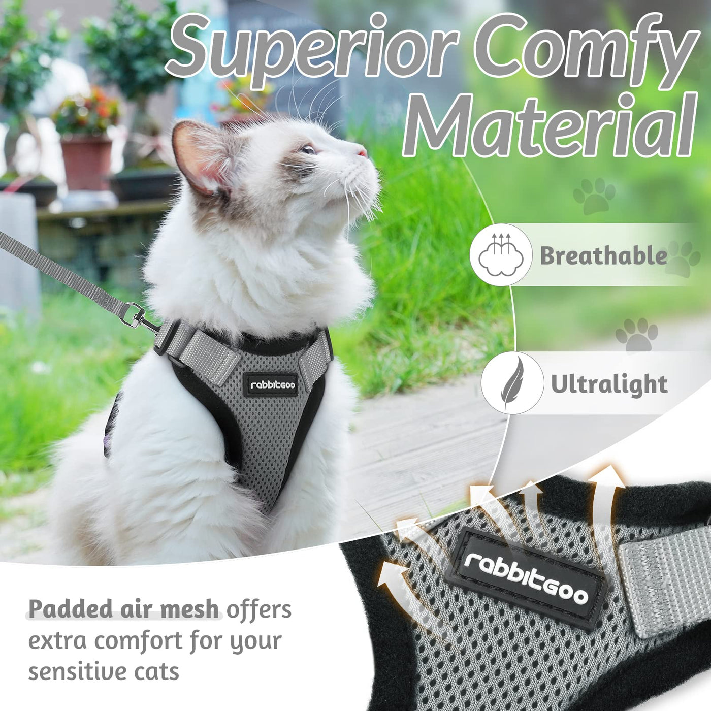Rabbitgoo Cat Harness And Leash For Walking, Escape Proof Soft Adjustable Vest Harnesses For Cats, Easy Control Breathable Reflective Strips Jacket, Grey, Xs