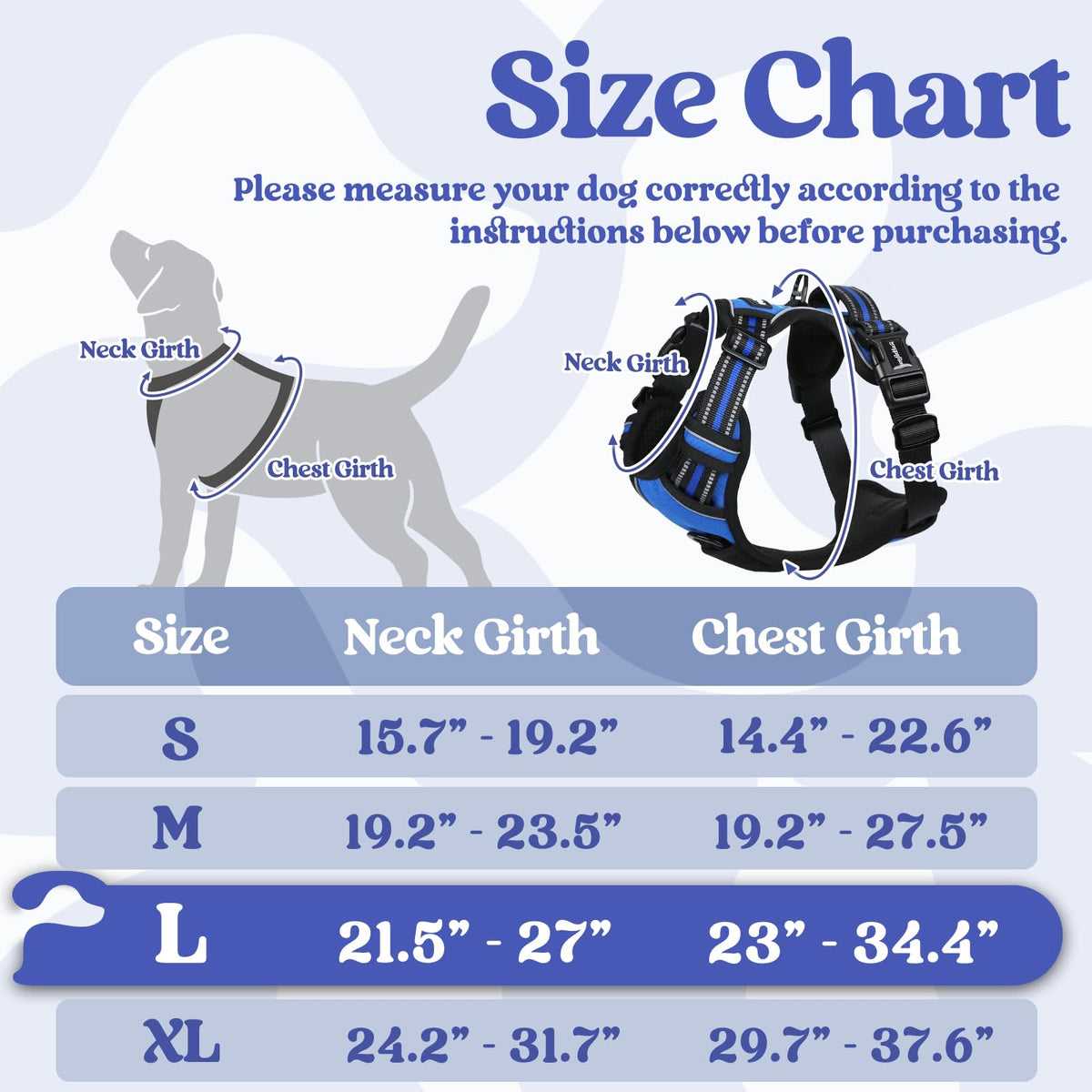 rabbitgoo Upgraded Dog Harness with 3 Buckles - Designed for Your Dog, and You. Every day, a lot of energetic and active dogs yearn to go outside and explore the outdoors, meet new furry friends, and be excited about nature. However, the dog might feel uncomfortable when the harness is placed over its head. To make wearing the dog harness easier and more comfortable, we have carefully created an improved version with three buckles, including an open buckle at the neck. There is an extra lockable red button on the buckle to ensure the buckle will not get released easily. By fastening the leash to the Front Clip of our harness, you can better control your dog thanks to its No-Pull Design. Your dog turned around every time he or she pulled, refusing to go forward and tug on the leash. Your dog will learn not to pull in no time. Encouraging walks will be enhanced because your dog will feel safe and comfortable while wearing them thanks to the soft, breathable padding that fits snugly around their entire body. Because we only used the best materials to make our harness, your dog will look amazing wearing it. Your outdoor journey with your pet becomes pure joy day or night when you use the Rabbitgoo Safety Dog Vest Harness.