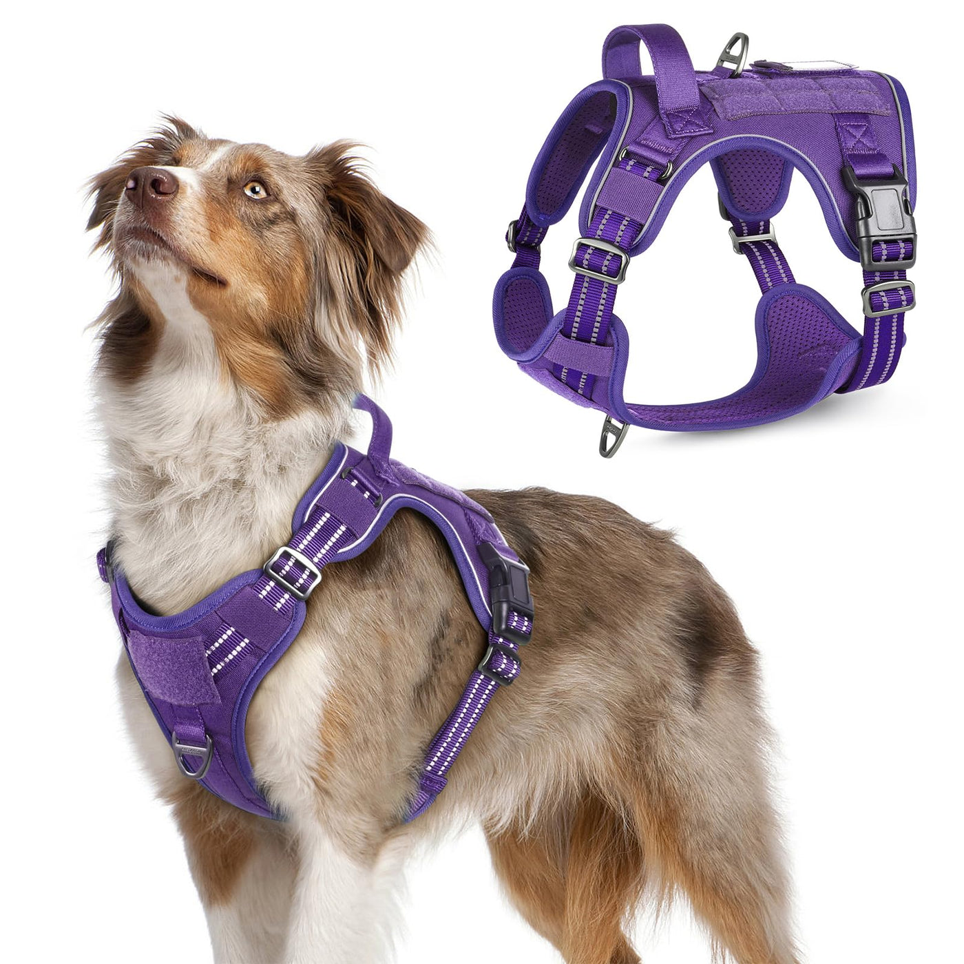 Rabbitgoo Dog Harness No Pull, Military Dog Harness Medium Sized Dog With Handle & Molle, Easy Control Service Dog Vest Harness Training Walking, Adjustable Reflective Tactical Pet Harness, Purple, M