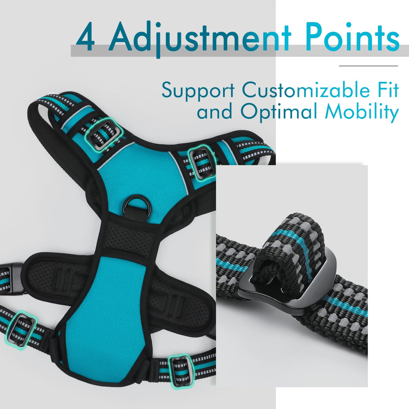 Rabbitgoo Dog Harness, No-Pull Pet Harness With 2 Leash Clips, Adjustable Soft Padded Dog Vest, Reflective No-Choke Pet Oxford Vest With Easy Control Handle For Large Dogs, Teal, Xl