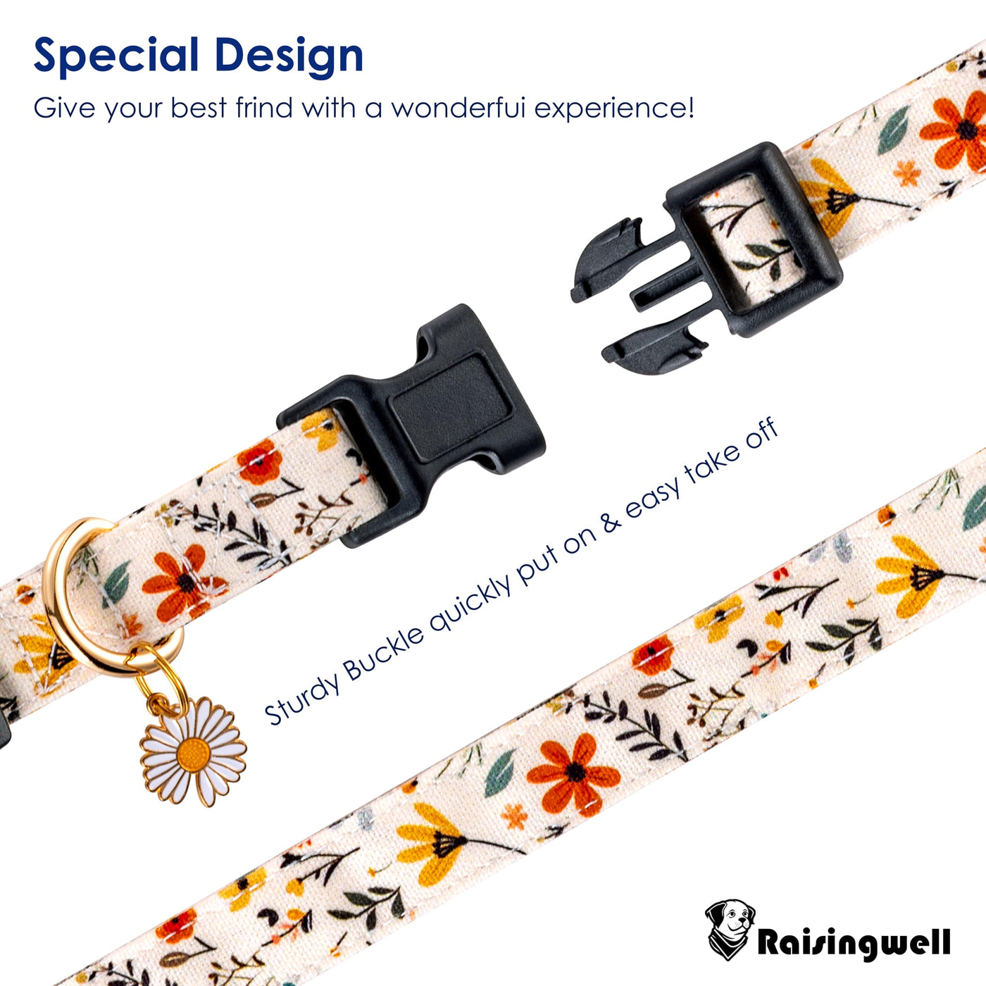 ?Colorful And Vibrant Patterns?Our Cute Dog Collars Stand Out With Their Unique Colors And Designs. The Exquisite Floral Patterns Add Color And Vibrancy, Perfect For Your Furry Friends' Spring, Summer, Fall, And Winter Adventures. ?High-Quality Materials?Raisingwell'S Dog Collars Are Made Of Double-Layered Cotton, With Sewn Edges And Multiple Rows Of Double Stitching, Making Them Durable And Reliable. This Ensures They Are A Long-Lasting Addition To Your Puppy'S Accessories. ?Unique Design?The Charming Flowers And Gold D-Ring With Colourful Daisy Design Will Make Your Female Dogs, Puppy Boys, Or Pretty Cats Look Gentle And Cute, Making Them Stand Out In The Crowd. ?Size-Adjustable Puppy Collar ?We Provide Dog Collars In 4 Sizes, Suitable For Large, Medium And Small Dogs. The Strong Buckle And Sliplock Can Easily Adjust The Size Of The Collar To Match The Dogs At Different Stages Of Growth. ?Perfect Gift?Raisingwell'S Dog Collar Is Perfect For Daily Wear, Photos, Holidays, Or Gatherings, Letting Your Pet Shine Any Day. This Thoughtful Gift Is Perfect For Your Furry Loved One. Please Use A Soft Ruler To Measure And Ensure There Are Only Two Fingers Of Space Between The Collar And Your Dog'S Neck For The Perfect Fit.