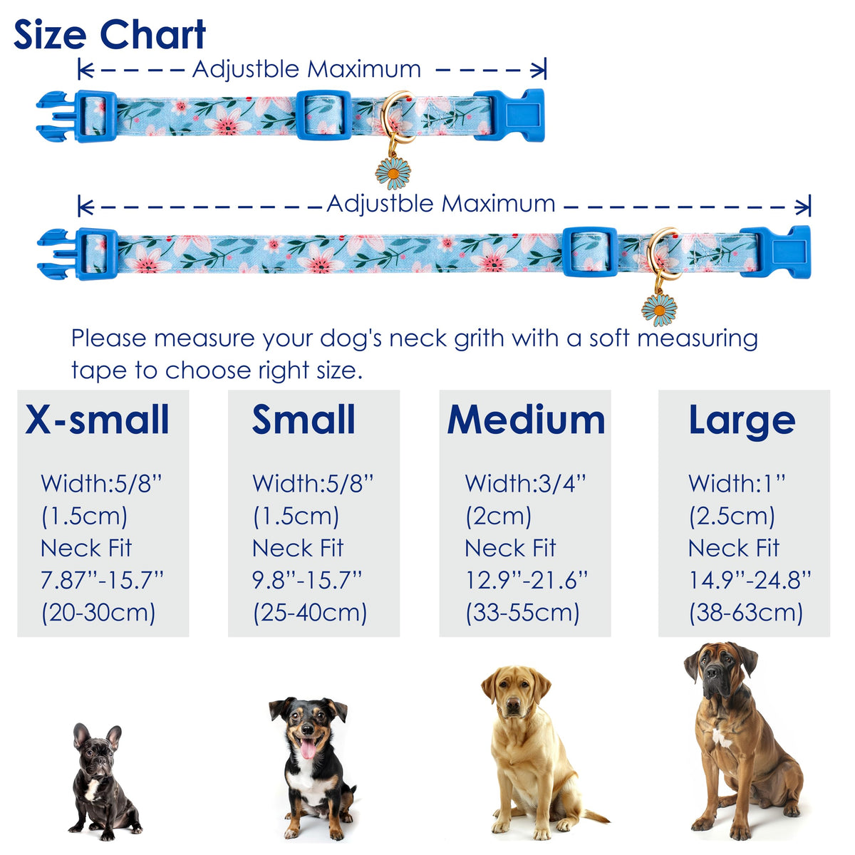 ?Colorful And Vibrant Patterns?Our Cute Dog Collars Stand Out With Their Unique Colors And Designs. The Exquisite Floral Patterns Add Color And Vibrancy, Perfect For Your Furry Friends' Spring, Summer, Fall, And Winter Adventures. ?High-Quality Materials?Raisingwell'S Dog Collars Are Made Of Double-Layered Cotton, With Sewn Edges And Multiple Rows Of Double Stitching, Making Them Durable And Reliable. This Ensures They Are A Long-Lasting Addition To Your Puppy'S Accessories. ?Unique Design?The Charming Flowers And Gold D-Ring With Colourful Daisy Design Will Make Your Female Dogs, Puppy Boys, Or Pretty Cats Look Gentle And Cute, Making Them Stand Out In The Crowd. ?Size-Adjustable Puppy Collar ?We Provide Dog Collars In 4 Sizes, Suitable For Large, Medium And Small Dogs. The Strong Buckle And Sliplock Can Easily Adjust The Size Of The Collar To Match The Dogs At Different Stages Of Growth. ?Perfect Gift?Raisingwell'S Dog Collar Is Perfect For Daily Wear, Photos, Holidays, Or Gatherings, Letting Your Pet Shine Any Day. This Thoughtful Gift Is Perfect For Your Furry Loved One. Please Use A Soft Ruler To Measure And Ensure There Are Only Two Fingers Of Space Between The Collar And Your Dog'S Neck For The Perfect Fit.