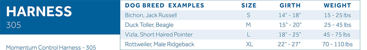 Q: What size dog is the RC Pet Products Momentum Dog Harness suitable for?A: The Medium size of the RC Pet Products Momentum Dog Harness is designed to fit dogs with a girth size of 20" - 28".