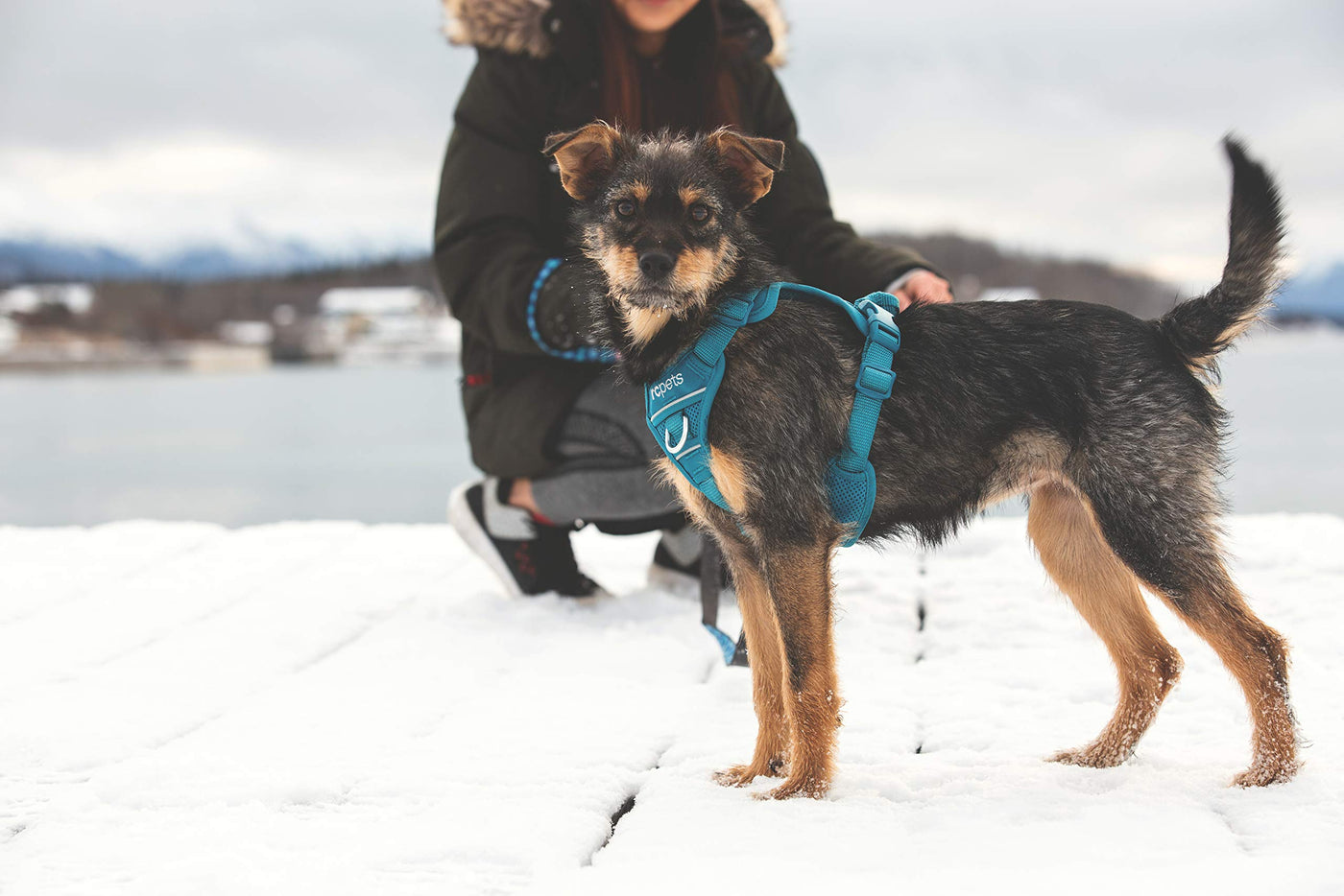 Q: What materials are used in the production of this harness?A: The harness is made from breathable mesh material, providing comfort and air circulation for your dog, even during extended wear.