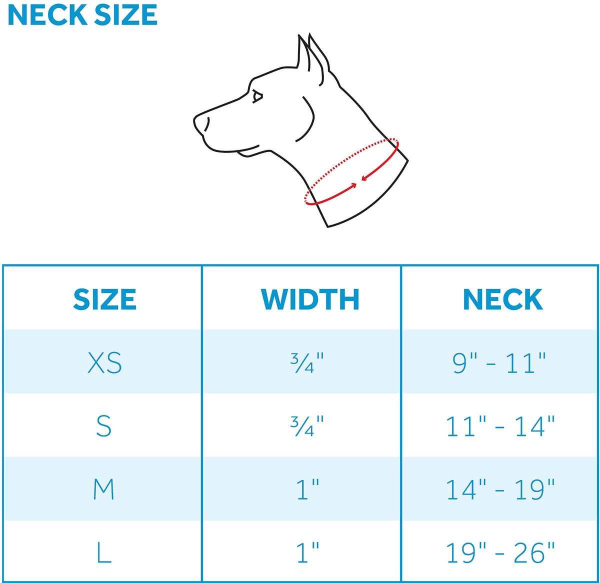Q: What sizes does the RC Pets Easy Clip Martingale Dog Collar come in?A: The RC Pets Easy Clip Martingale Dog Collar is available in a size small, which adjusts to fit neck sizes between 11 to 14 inches.