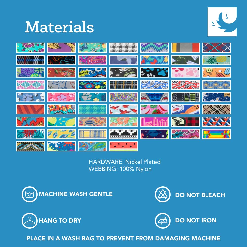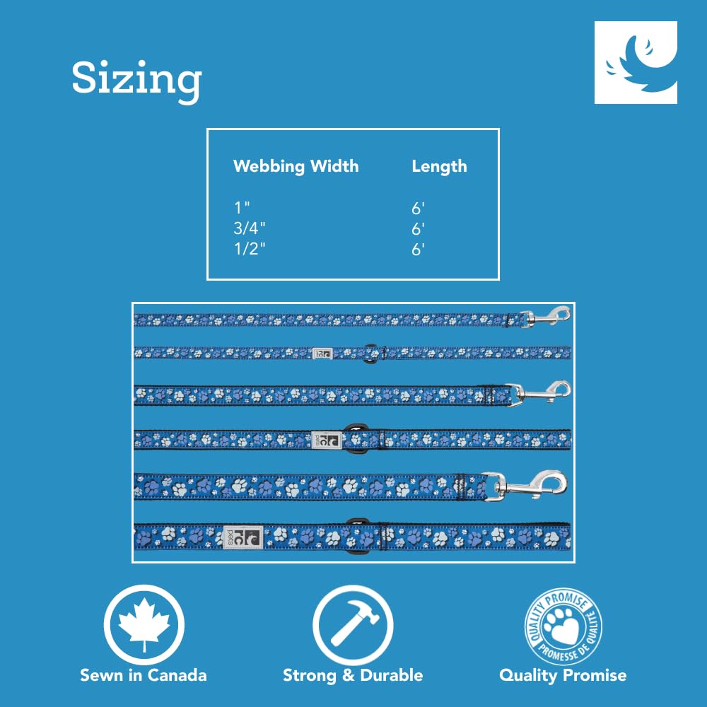 We are famous for our leashes! Our 6' and 4' feature a decorative soft quality webbing with a reflective label and a floating d-ring accessory for carrying RC Pets accessories such as the P.U.P. bag or the Rain Poncho. There are multiple patterns available to choose from, matching collars are sold separately, please visit our amazon store to view all selection. All our collars and leashes are proudly made in Canada.