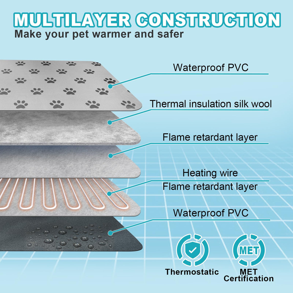 Rc Sll Extra Large Dog Heating Pad, 47X30 In, Grey, Heat Mat For Dog, Waterproof Heated Dog Bed, Whelping Heat Pad, Dog Beds For
