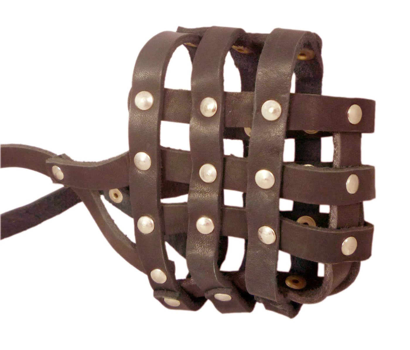 Real Leather Dog Basket Muzzle #107 Brown - Pit Bull, Amstaff (Circumference 12', Snout Length 3.5')