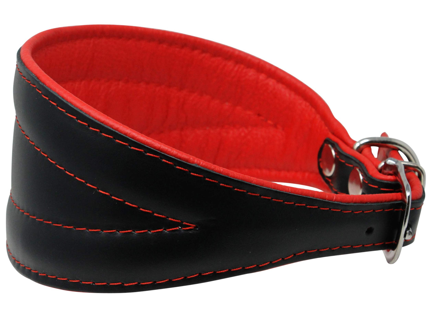 Real Leather Extra Wide Padded Tapered Dog Collar Glossy Black Greyhound Saluki Deerhound Lurcher Whippet Dachshund (14.25-17 Ne
