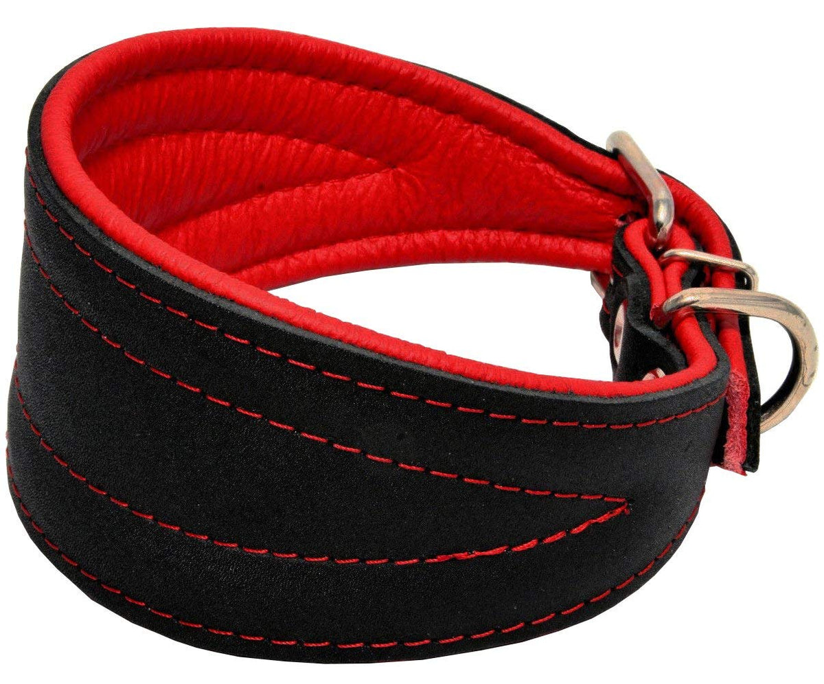 Real Leather Extra Wide Padded Tapered Dog Collar Glossy Black Greyhound Saluki Deerhound Lurcher Whippet Dachshund (16.25'-18.