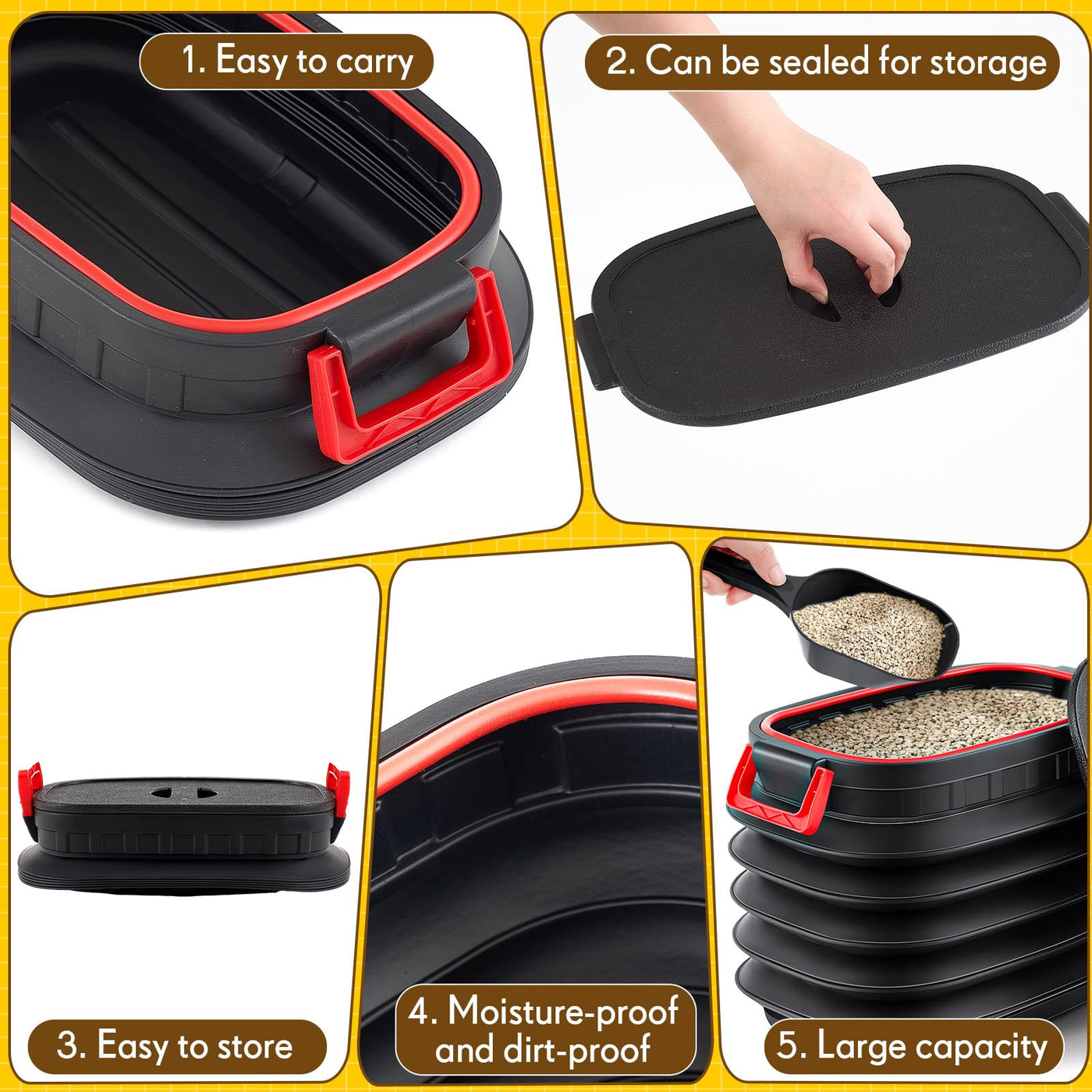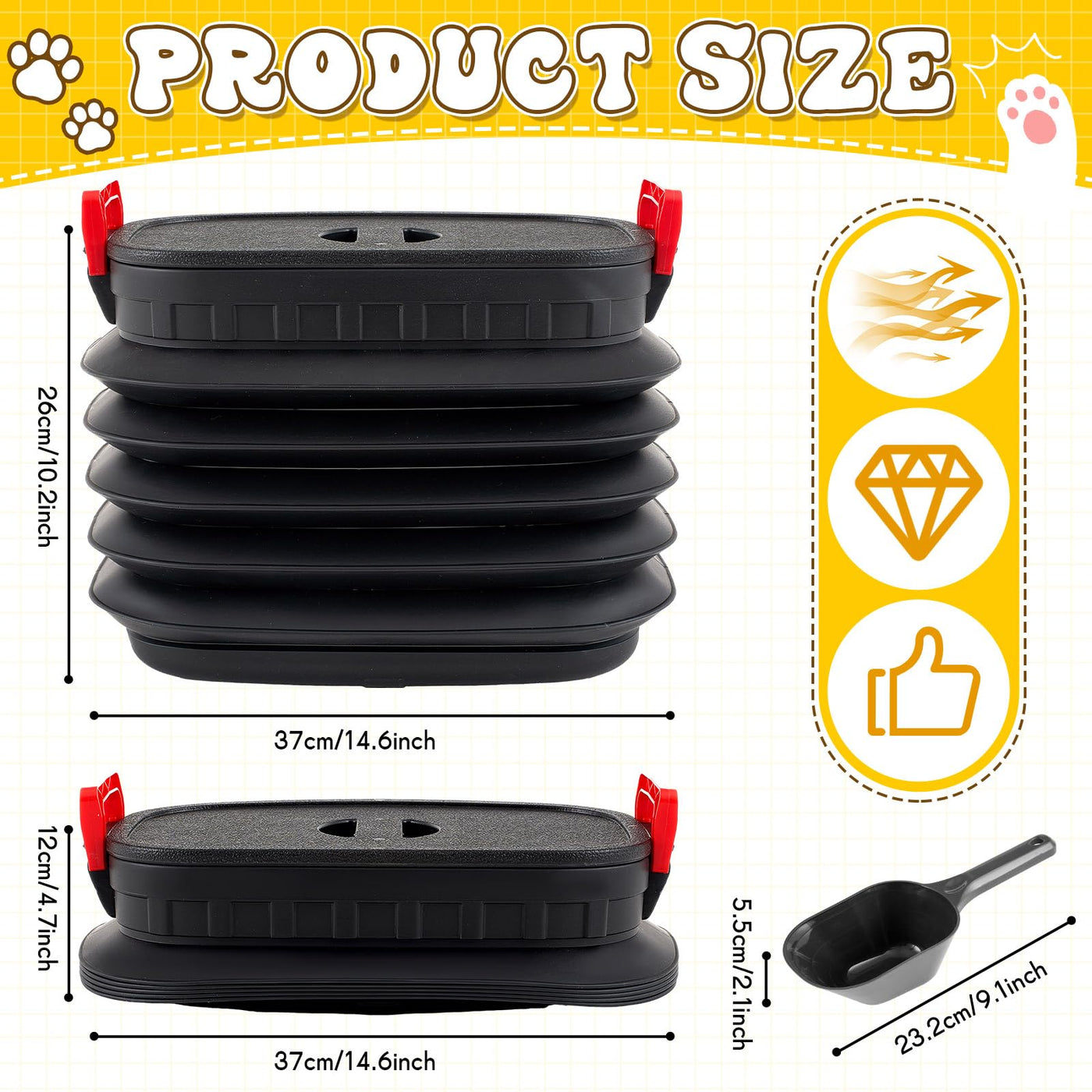 Features: Store It Properly. Our Telescopic Bucket Features A Wetproof Design And Magnetic Seal Cover That Locks Securely, Ensuring A Dry Space For Your Cat'S Litter. Revolutionize How You Store Pet Supplies. Our Telescopic Bucket Packs As Much On Durability As It Saves On Space, Not An Inch Wasted. Whether Indoors Or Outdoors, It Conveniently Folds Down For Easy Storage, Making It An Essential Product For Every Modern Pet Owner. Specifications: Material: Pvc Bucket Color: Black Size: About 14.57 X 10.24 Inches/ 37 X 26 Cm After Unfolded Package Includes: 1 X Portable Litter Storage Container1 X Shovel Notes: Manual Measurement, Please Allow Slight Errors On Size. The Color May Exist A Slight Difference Due To Different Screen Displays.