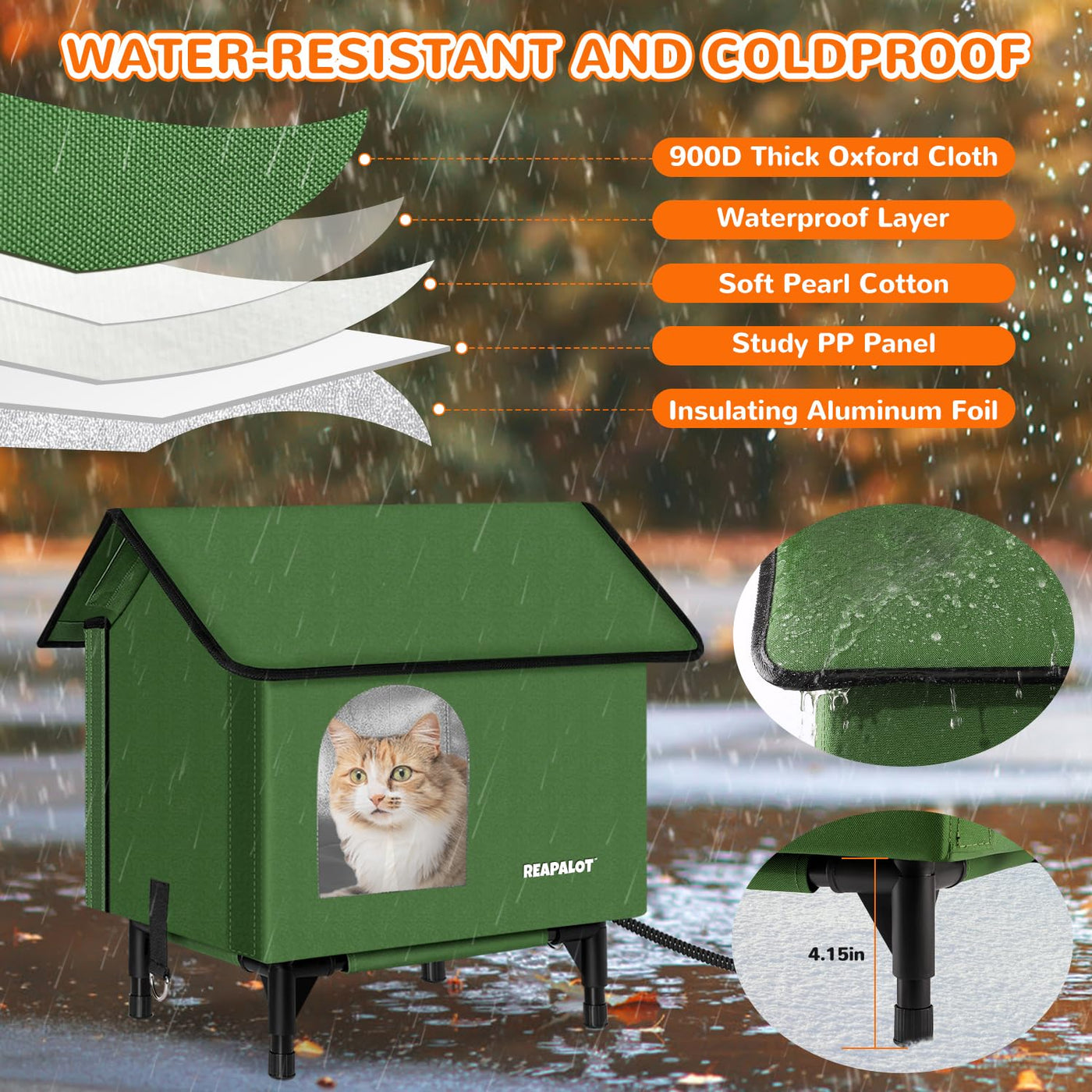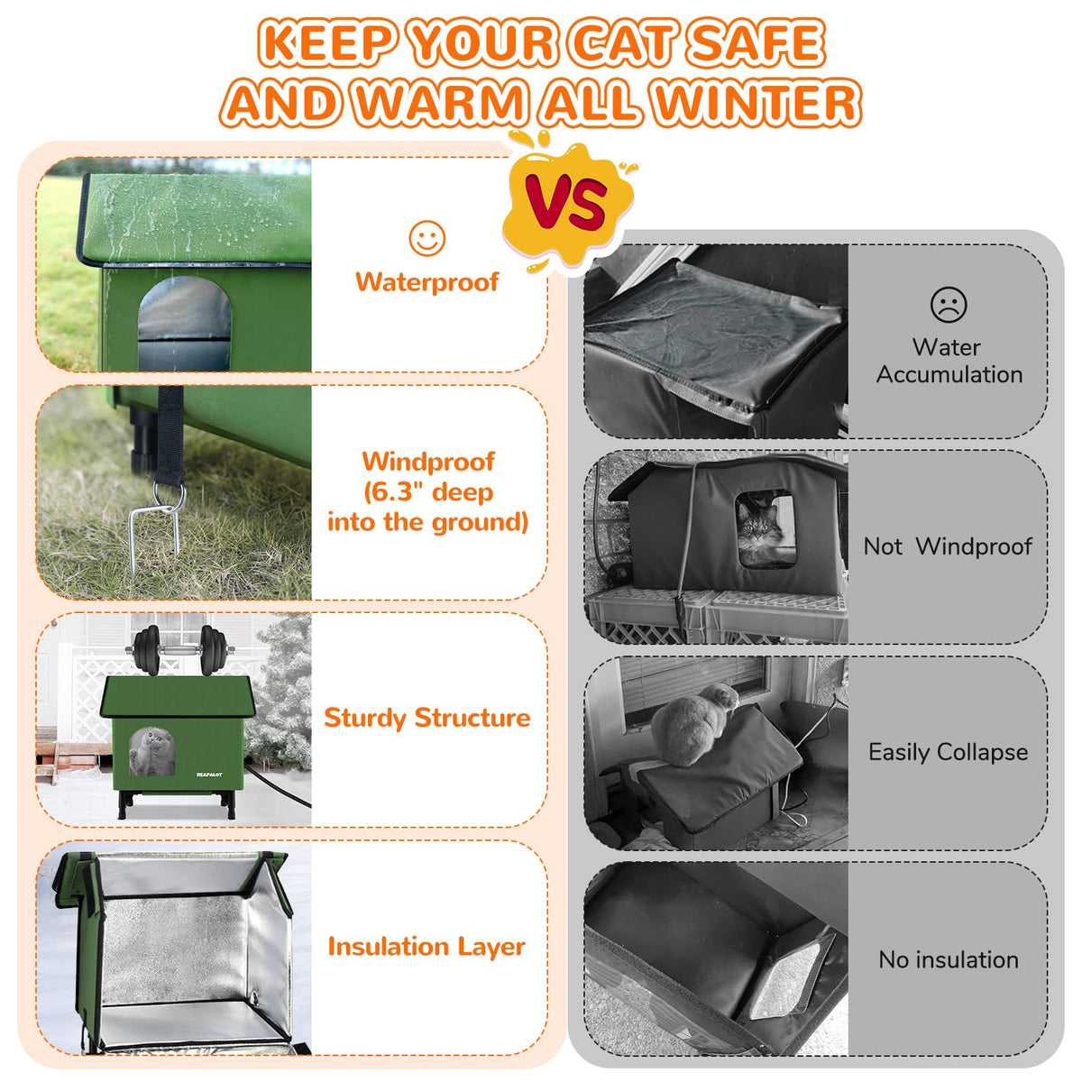 Reapalot Heated Cat House For Outside Cat In Winter, Insulated Outdoor Feral Cat Shelter With Cat Heating Pad, Elevated Heated K