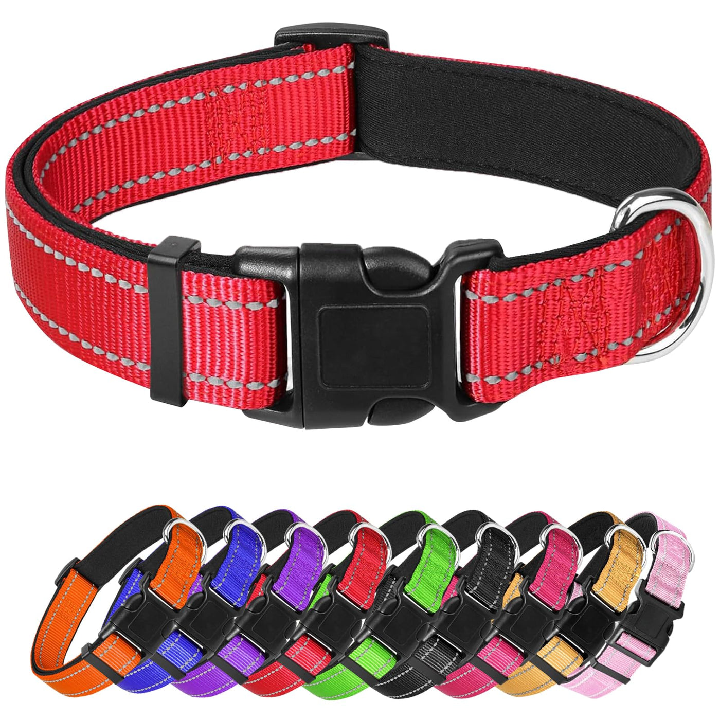 Red Dog Collar, Reflective Pet Collar with Buckle Adjustable Safety Nylon Collars for Small Medium Large Dogs, XL
