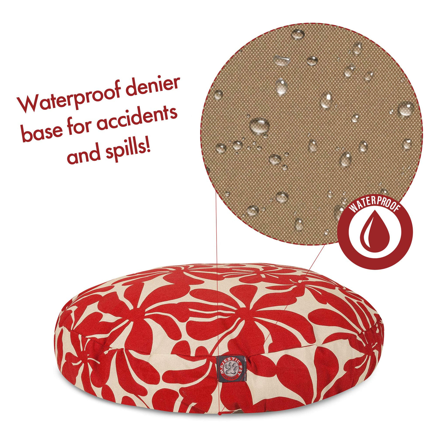 Indoors or outdoors, these high-quality dog beds are just what your dog needs to keep them rested and ready for their next adventure. The Majestic Pet Red Plantation Medium Round Pet Bed is filled with a generous portion of super plush fiberfill for warmth and unbeatable comfort. The removable zippered slipcovers are woven from durable Outdoor Treated polyester with up to 1000 hours of U.V. protection enabling it to withstand natures elements. Heavy-duty zippers will stand up to years of washing and use. The machine washable slip cover can be tossed in the washer on machine wash warm, then tumble dry on low for easy cleaning.