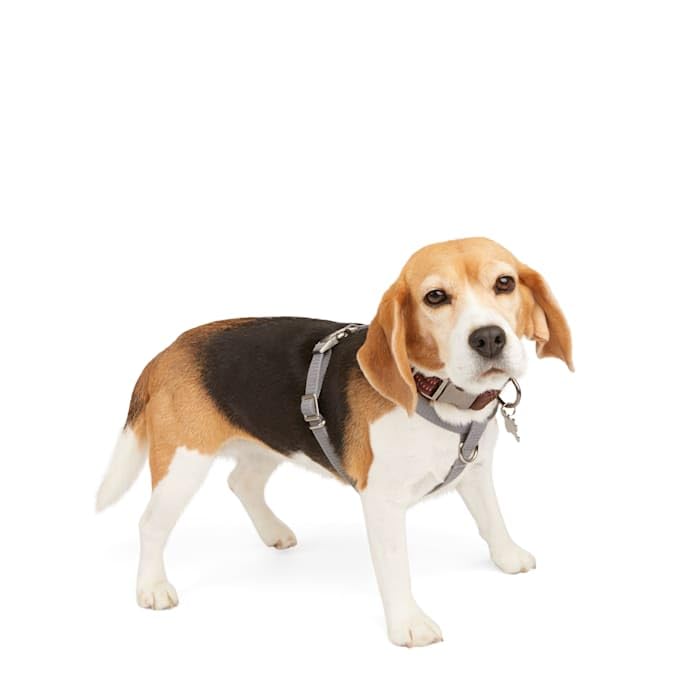 The Grey Reflective Harness From Reddy Is Perfect For Early Morning Or Evening Walks. The Reflective Webbing Provides Visibility In Low Light Settings, While The Front Dring Helps Prevent Puppy From Pulling When A Squirrel Darts Past His Path.