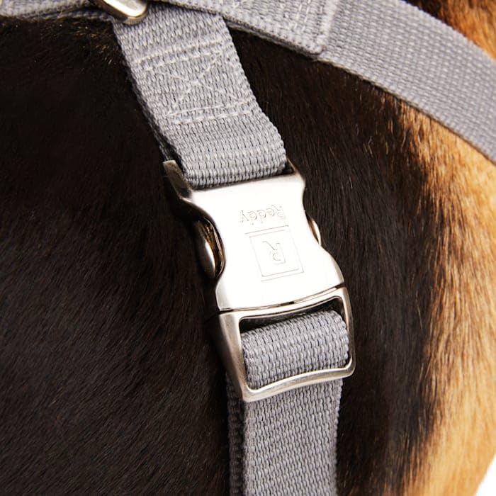 The Grey Reflective Harness From Reddy Is Perfect For Early Morning Or Evening Walks. The Reflective Webbing Provides Visibility In Low Light Settings, While The Front Dring Helps Prevent Puppy From Pulling When A Squirrel Darts Past His Path.