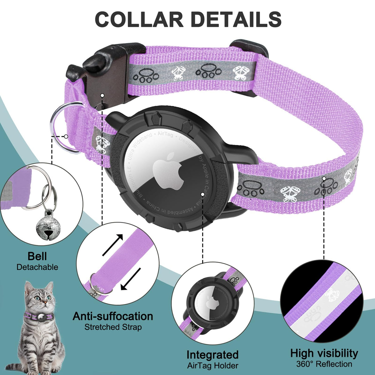Reflective Airtag Cat Collar, Integrated Cat Tracker Collar With Air Tag Holder And Bell, Safety Elastic Band Cat Gps Collars Fo