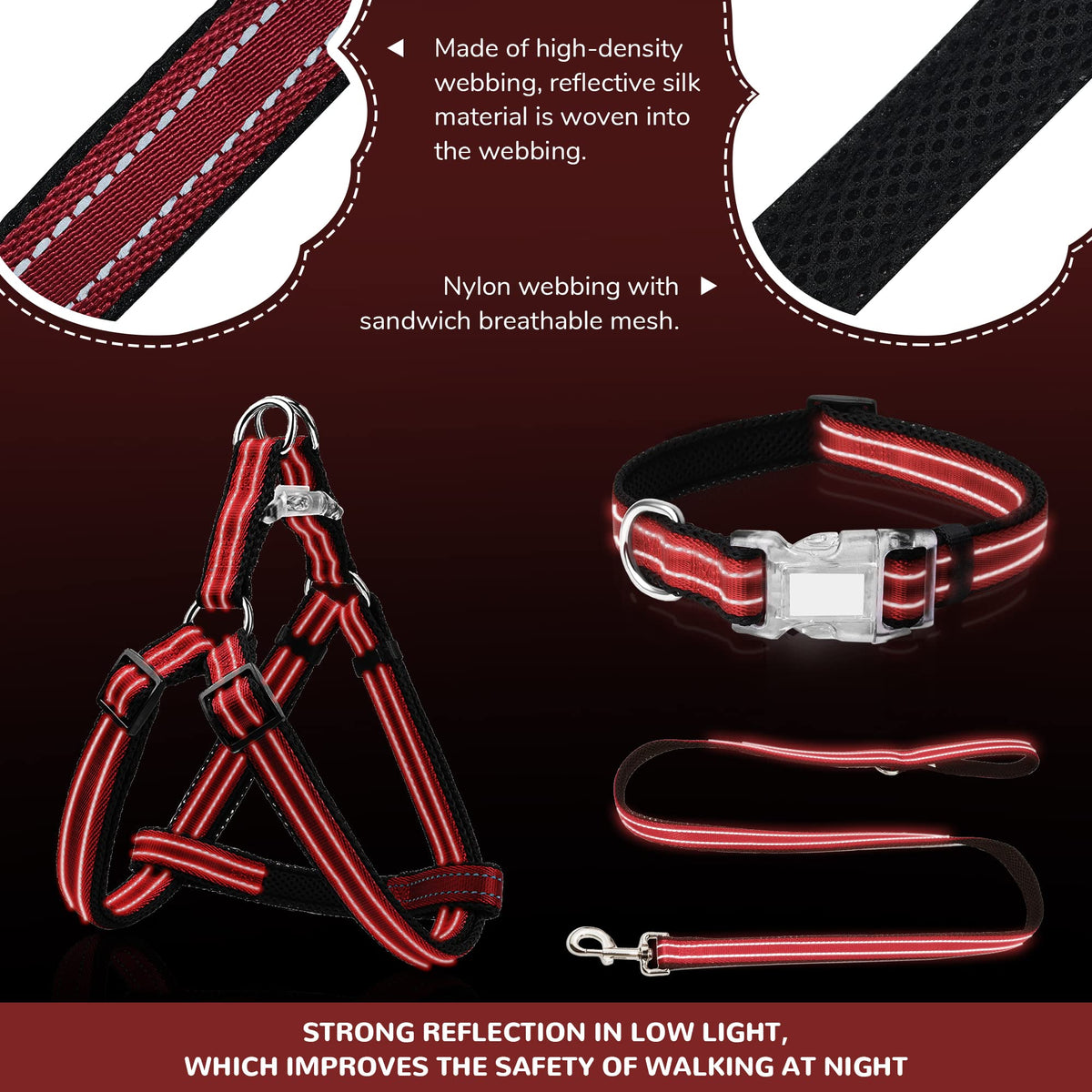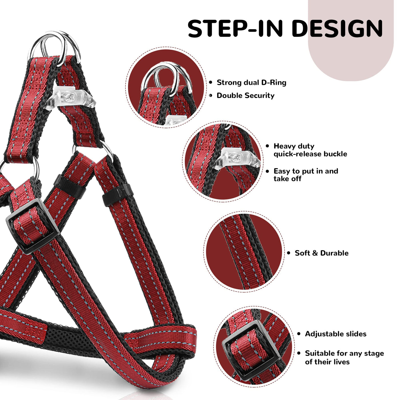 Why Choose Us? At Pawhuggies, We Understand That Your Dog Is More Than Just A Pet-Theyre A Cherished Member Of Your Family. Thats Why Were Dedicated To Providing Products That Prioritize Safety, Comfort, And Durability. Heres Why Our Reflective Dog Harness And Leash Set Stands Out From The Rest: Superior Visibility: Our Dog Harness Features High-Visibility Reflective Strips That Outperform Standard Options, Ensuring Your Dog Is Seen From Up To 500 Feet Away. This Level Of Visibility Is Essential For Safe Nighttime Walks And Low-Light Conditions. Exceptional Comfort : Unlike Traditional Collars That Can Cause Discomfort, Our Ergonomically Designed Harness Provides Gentle Support To Your Dogs Body And Neck. The Adjustable, Soft Chest Clip Ensures A Perfect Fit, Preventing Any Skin Irritations Or Fur Damage. Premium Durability: Made From Top-Quality Rip-Stop Nylon And High-Density Webbing, Our Harness Is Built To Endure Even The Most Active Dogs. The Robust Dual D-Rings And Heavy-Duty Buckle Guarantee Reliable Security, Offering Peace Of Mind During Every Adventure. User-Friendly Design: Our Harness Is Designed With Pet Parents In Mind. The Quick-Release Buckles And Step-In Design Make It Easy To Put On And Take Off, Saving You Time And Reducing Hassle. Additionally, The Lightweight And Washable Materials Ensure Easy Maintenance. Reliable Security: Safety Is Our Top Priority. Equipped With Sturdy Dual D-Rings And A Heavy-Duty Buckle, Our Harness Provides Unwavering Security, Whether Your Dog Is Tugging, Jumping, Or Sprinting. Trust Our Harness To Keep Your Dog Safe During All Their Activities. Choose Pawhuggies For A Harness That Combines Safety, Comfort, And Durability. Were Committed To Enhancing The Lives Of Both You And Your Furry Friend, Ensuring Every Walk Is A Joyful And Worry-Free Experience.