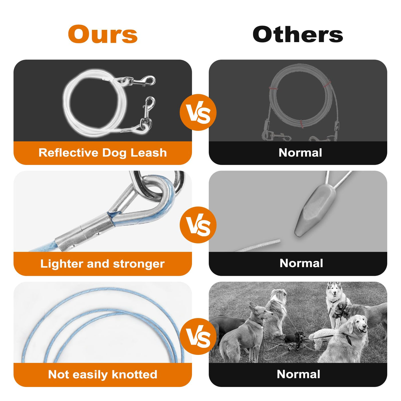 Reflective Dog Stakes For Outside Kit,Dog Tie Out Cable,10Ft Heavy-Duty 200Lbs Stake With 360 Rotating Clip,Waterproof Bite-Proo