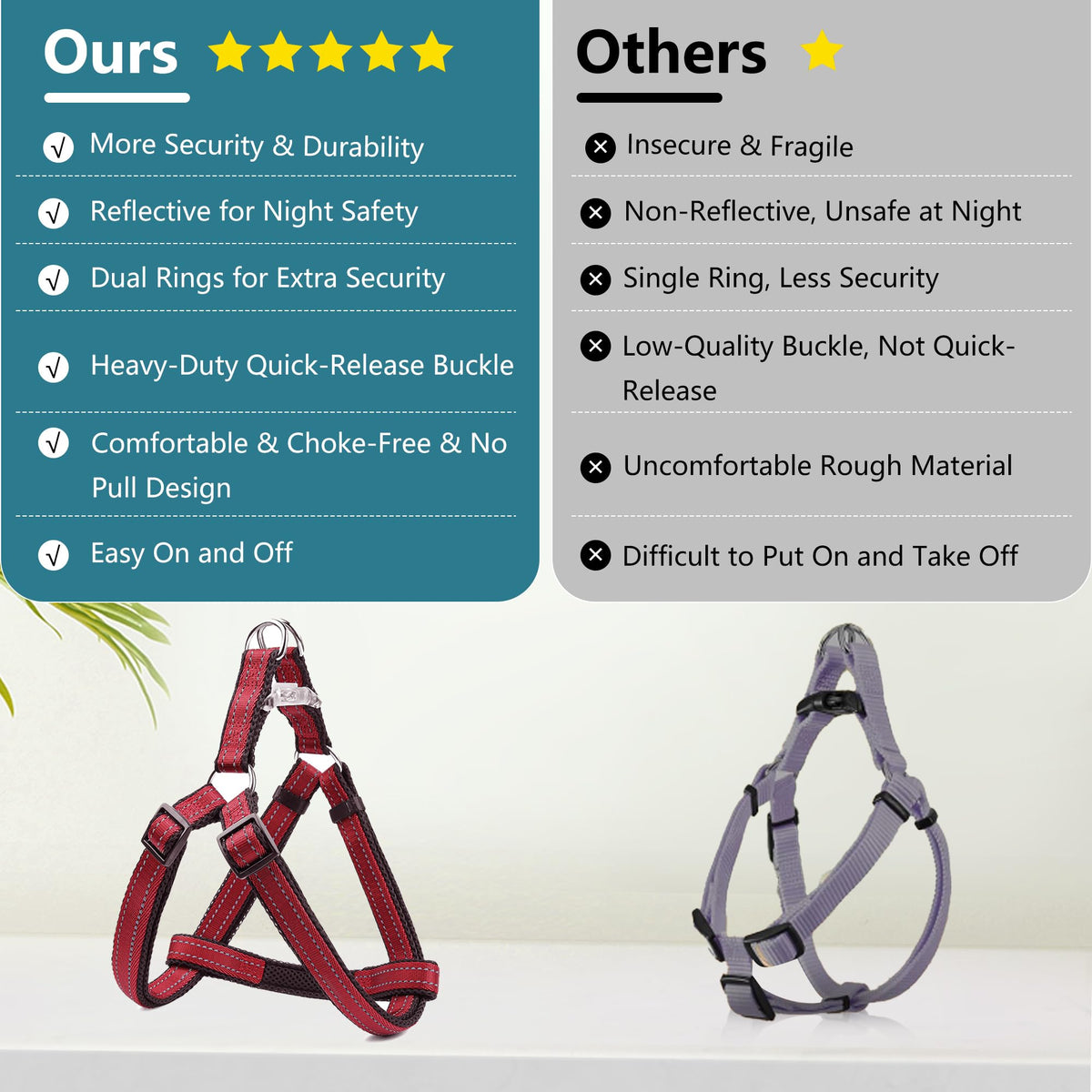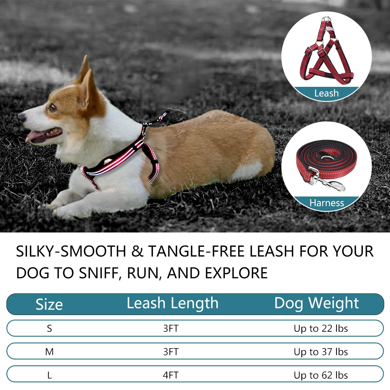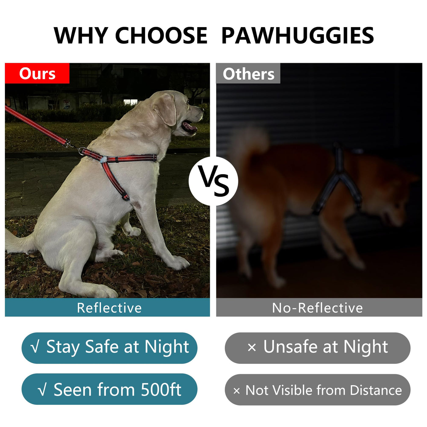Why Choose Us? At Pawhuggies, We Understand That Your Dog Is More Than Just A Pet-Theyre A Cherished Member Of Your Family. Thats Why Were Dedicated To Providing Products That Prioritize Safety, Comfort, And Durability. Heres Why Our Reflective Dog Harness And Leash Set Stands Out From The Rest: Superior Visibility: Our Dog Harness Features High-Visibility Reflective Strips That Outperform Standard Options, Ensuring Your Dog Is Seen From Up To 500 Feet Away. This Level Of Visibility Is Essential For Safe Nighttime Walks And Low-Light Conditions. Exceptional Comfort : Unlike Traditional Collars That Can Cause Discomfort, Our Ergonomically Designed Harness Provides Gentle Support To Your Dogs Body And Neck. The Adjustable, Soft Chest Clip Ensures A Perfect Fit, Preventing Any Skin Irritations Or Fur Damage. Premium Durability: Made From Top-Quality Rip-Stop Nylon And High-Density Webbing, Our Harness Is Built To Endure Even The Most Active Dogs. The Robust Dual D-Rings And Heavy-Duty Buckle Guarantee Reliable Security, Offering Peace Of Mind During Every Adventure. User-Friendly Design: Our Harness Is Designed With Pet Parents In Mind. The Quick-Release Buckles And Step-In Design Make It Easy To Put On And Take Off, Saving You Time And Reducing Hassle. Additionally, The Lightweight And Washable Materials Ensure Easy Maintenance. Reliable Security: Safety Is Our Top Priority. Equipped With Sturdy Dual D-Rings And A Heavy-Duty Buckle, Our Harness Provides Unwavering Security, Whether Your Dog Is Tugging, Jumping, Or Sprinting. Trust Our Harness To Keep Your Dog Safe During All Their Activities. Choose Pawhuggies For A Harness That Combines Safety, Comfort, And Durability. Were Committed To Enhancing The Lives Of Both You And Your Furry Friend, Ensuring Every Walk Is A Joyful And Worry-Free Experience.