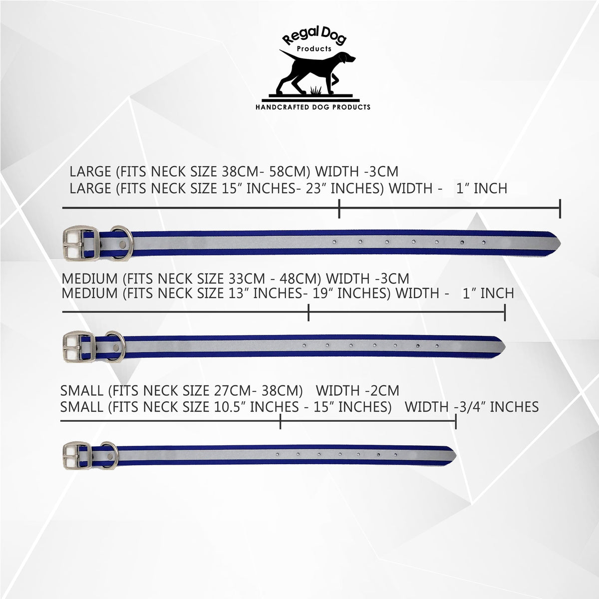 Regal Dog Products: Stylish, Safe, And Strong! You May Have Thought Your Dog Cant Get Any Cuter, But That Was Before You Discovered Regal Dog Products. Sure, A Dog Is A Dog, But Who Said Your 4-Legged Friend Cant Be Fashion-Forward? At Regal Dog Products, We Design Cute Collars For Dogs With Not Only Fashion In Mind, But Also Durability, Comfort, And Safety. Adorn Your Dog With Regal Dog Products, Which Are Made Right Here In The U.S.A.! Sizing Instructions 1.Use A Measuring Tape, Cloth Tape, Or A Piece Of String (And Measure The String). 2.Measure Your Dog'S Neck Where You Want The Collar To Rest On The Neck And At The Appropriate Tightness. 3.Once You Have A Measurement, Refer To The Sizing Chart Below To Find The Appropriate Size. 4.The Collar Size Represents The Measurement From The Center Of The Buckle To The Middle Adjustment Hole. 5.You Can Adjust 2-Inch Longer Or 2-Inches Shorter. Sizing Instructions Small (10'' - 14.5'') Medium (13'' - 19'') Large (15'' - 23'')